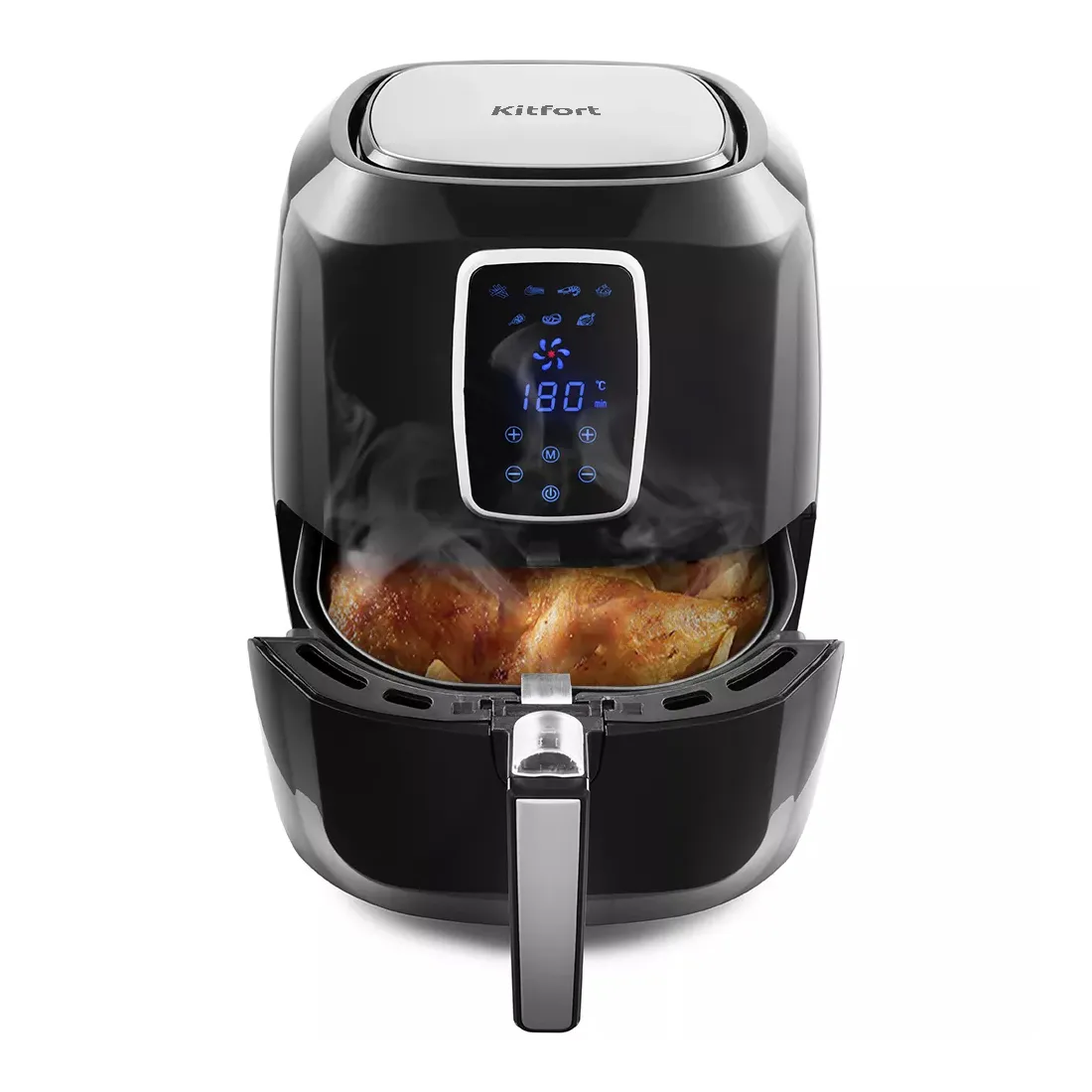 Внутри аэрогриля можно создать температуру в диапазоне от 80 до 200°С, что указывает на возможность готовить в нем самые разные продукты, от овощей до красного мяса. Модель с объемом колбы 5.2 л имеет электронное управление и 7 автоматических программ работы. Таймер на 60 минут с отсрочкой старта делает обращение с аэрогрилем KITFORT КТ-2208 максимально удобным.
