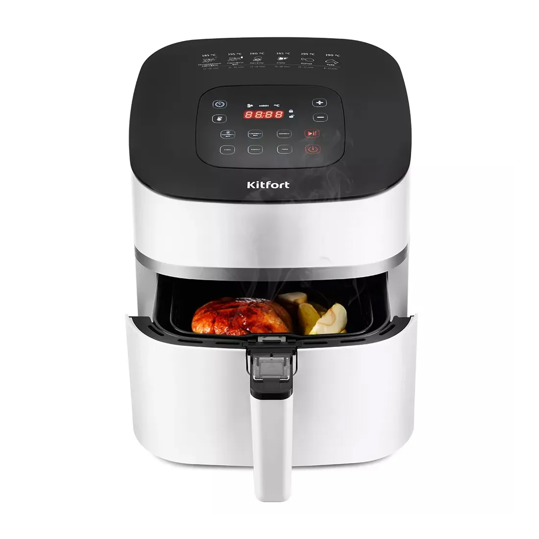 Стильный аэрогриль Kitfort КТ-2217 может использоваться как аэрогриль, а также как аэрофритюрница и духовка и позволяет готовить большинство продуктов с минимальным количеством масла или вовсе без его добавления.