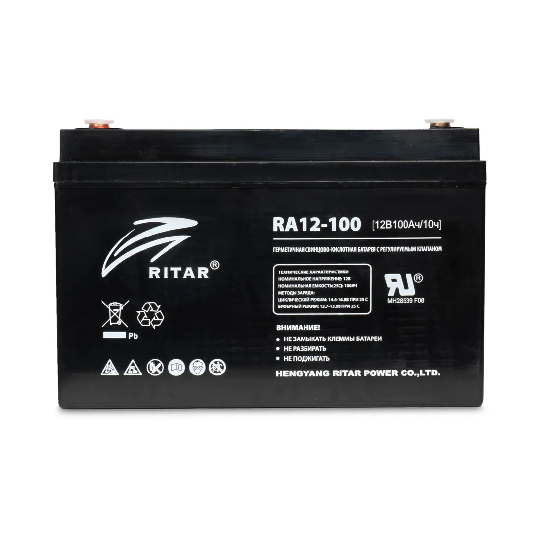 Батарея, Ritar, RA12-100, Свинцово-кислотная 12В 100 Ач, Вес нетто: 28,5 кг, Размер в мм.: 328*172*220