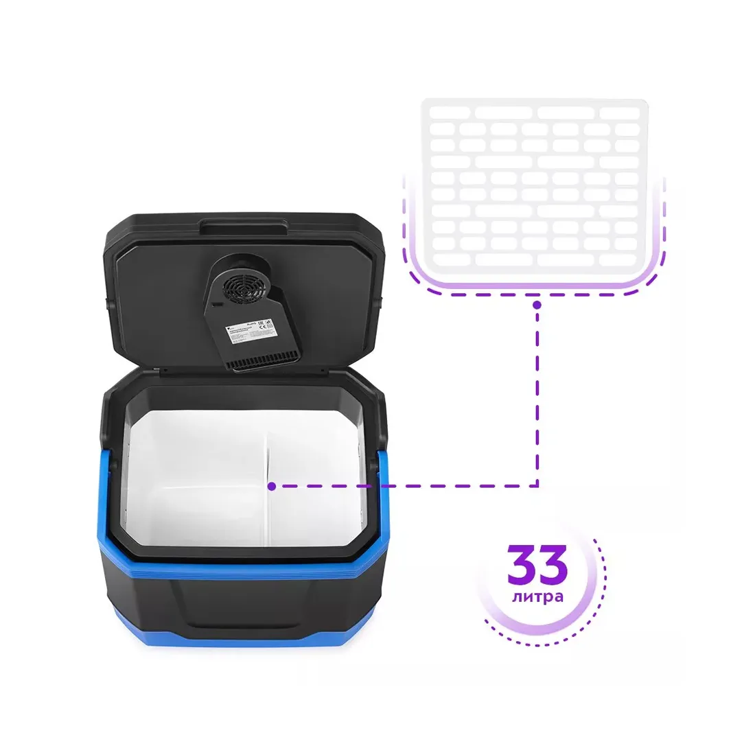 Автохолодильник Kitfort КТ-2434 оснащён камерой для хранения объёмом 33 литра. В комплекте к устройству идет съемная разделительная решетка, которую можно использовать, чтобы продукты в камере не перекатывались и не помяли друг друга.
