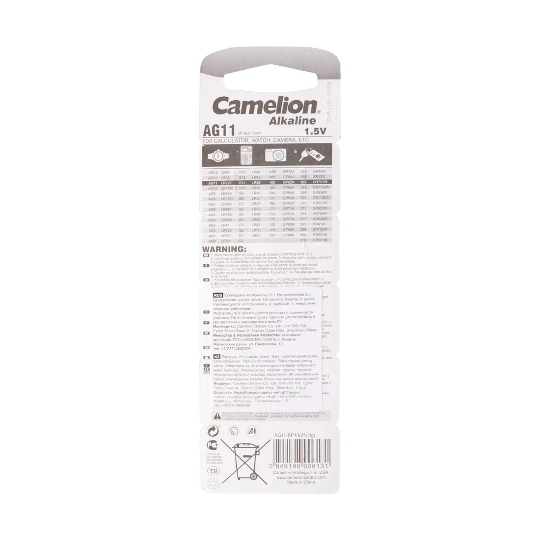 Батарейка CAMELION Alkaline AG11-BP10(0%Hg)