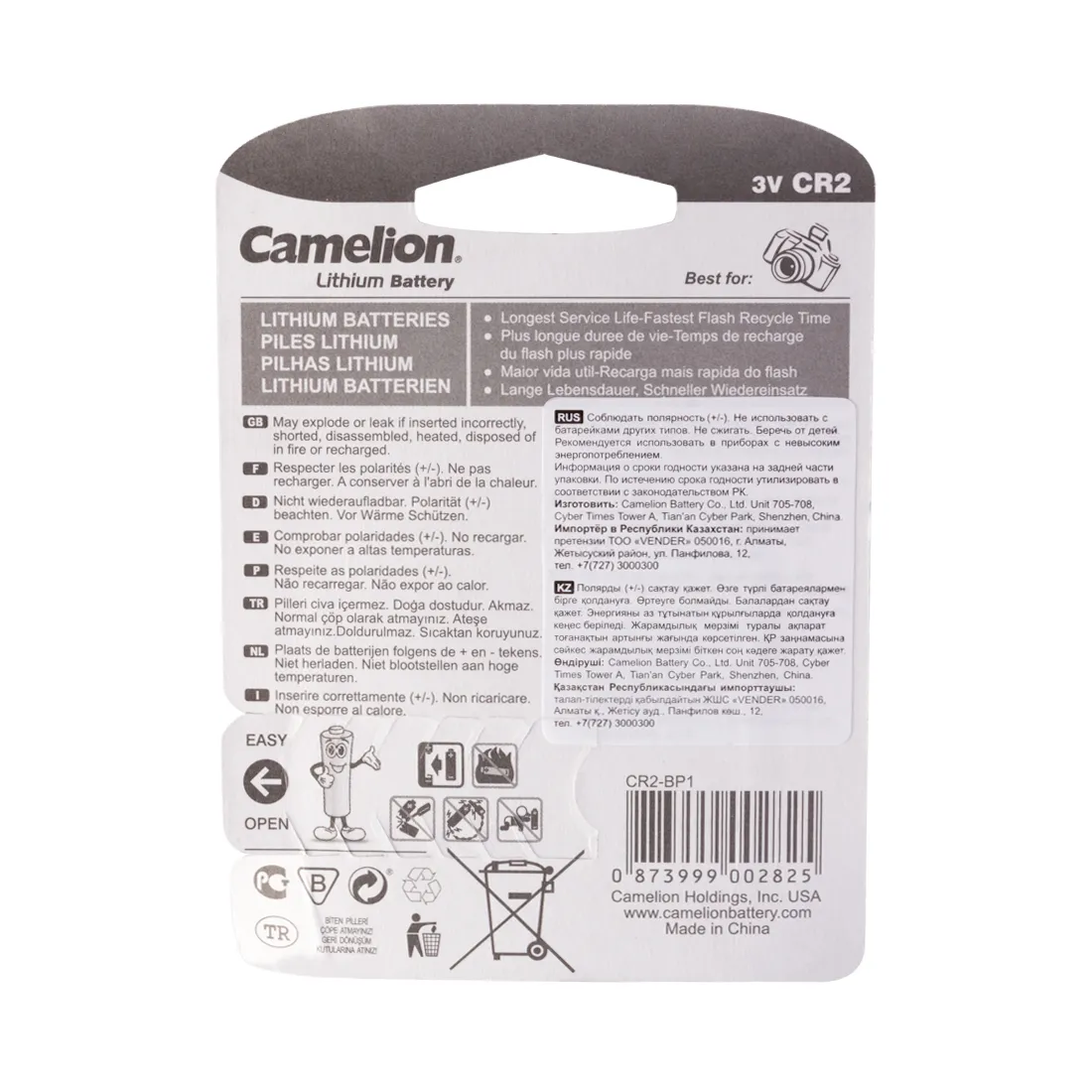 Батарейки CR2-BP1 идеально подходят для широкого спектра аналоговых камер, фонариков, радиоплееров, автоматических сенсорных кранов и т. д. С батарейками CAMELION цифровое устройство проработает долго и не подведёт внезапно в самый ответственный момент.