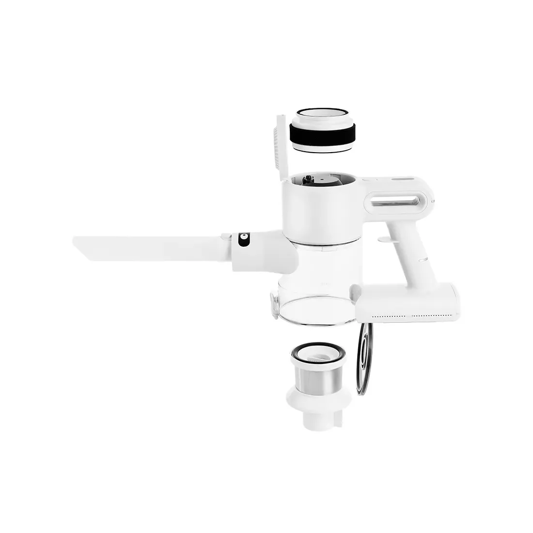 В пылесборнике находится НЕРА-фильтр Н13 и фильтр грубой очистки c металлической сеткой. НЕРА-фильтр — последний уровень фильтрации, он останавливает мельчайшие частички пыли, чтобы они не могли попасть в мотор устройства или обратно в воздух.