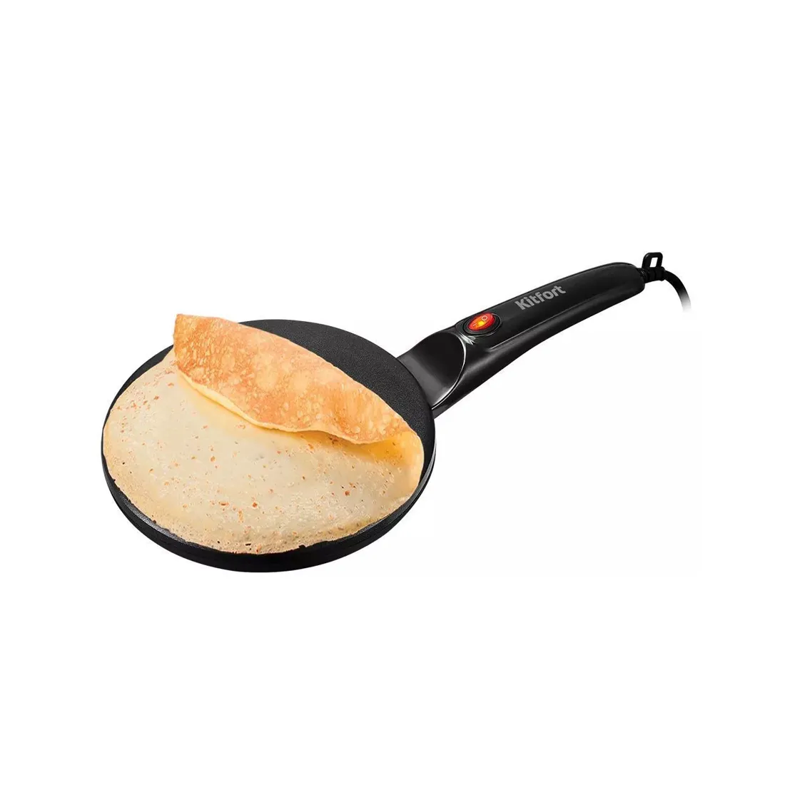 С помощью погружной блинницы Kitfort КТ-1676 можно испечь блины быстро и без особых усилий. Блин получается с ровными краями и равномерной толщины. Блинницу не нужно ставить на плиту, поэтому печь можно на любой удобной твёрдой поверхности.