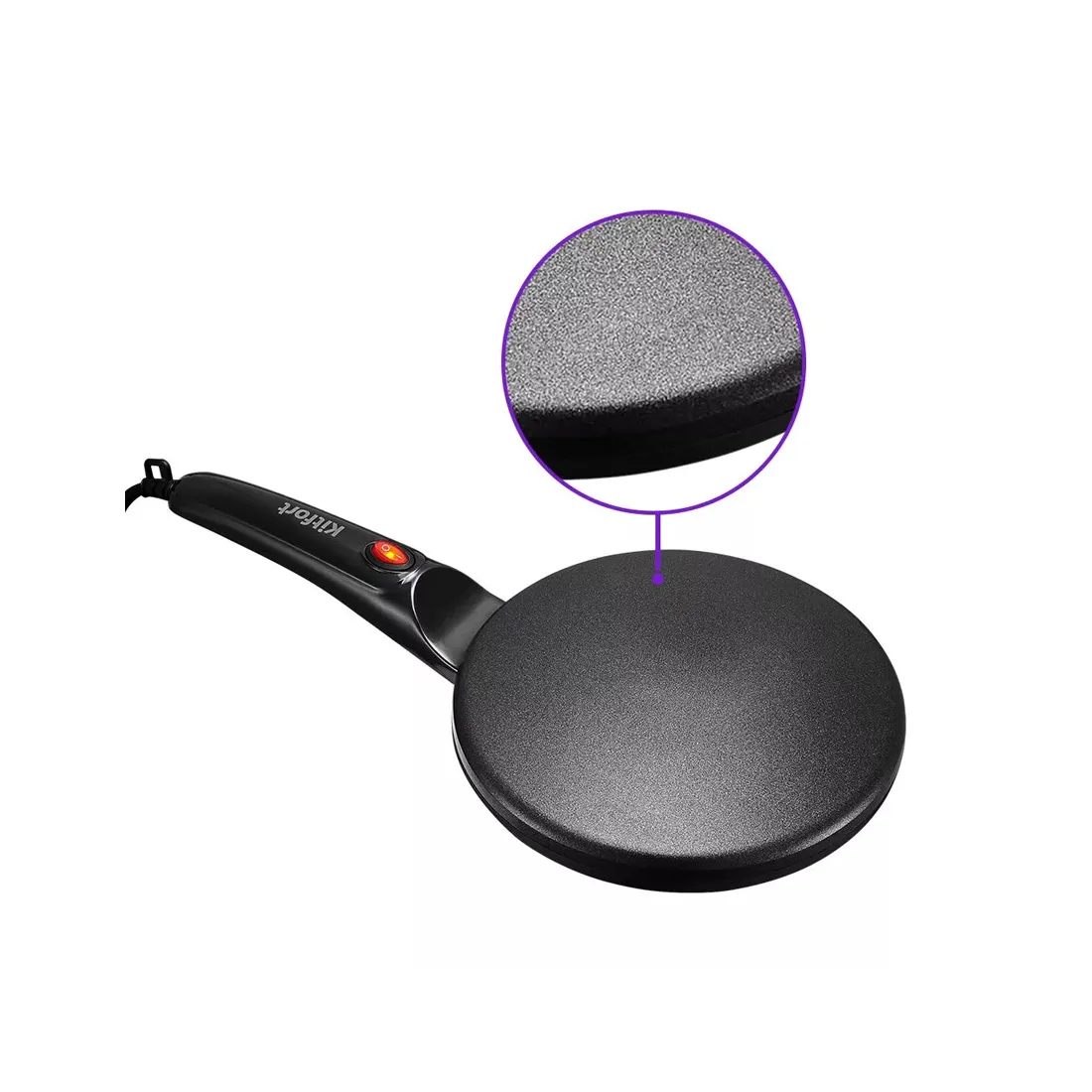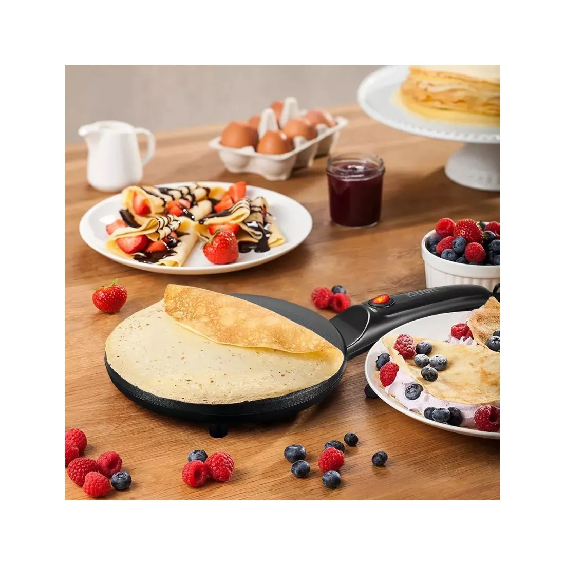 Благодаря антипригарному покрытию готовить можно с минимальным количеством масла: масло добавляется в тесто, поэтому при выпечке оно не разбрызгивается в разные стороны. Блинница оснащена термостатом для поддержания постоянной температуры.