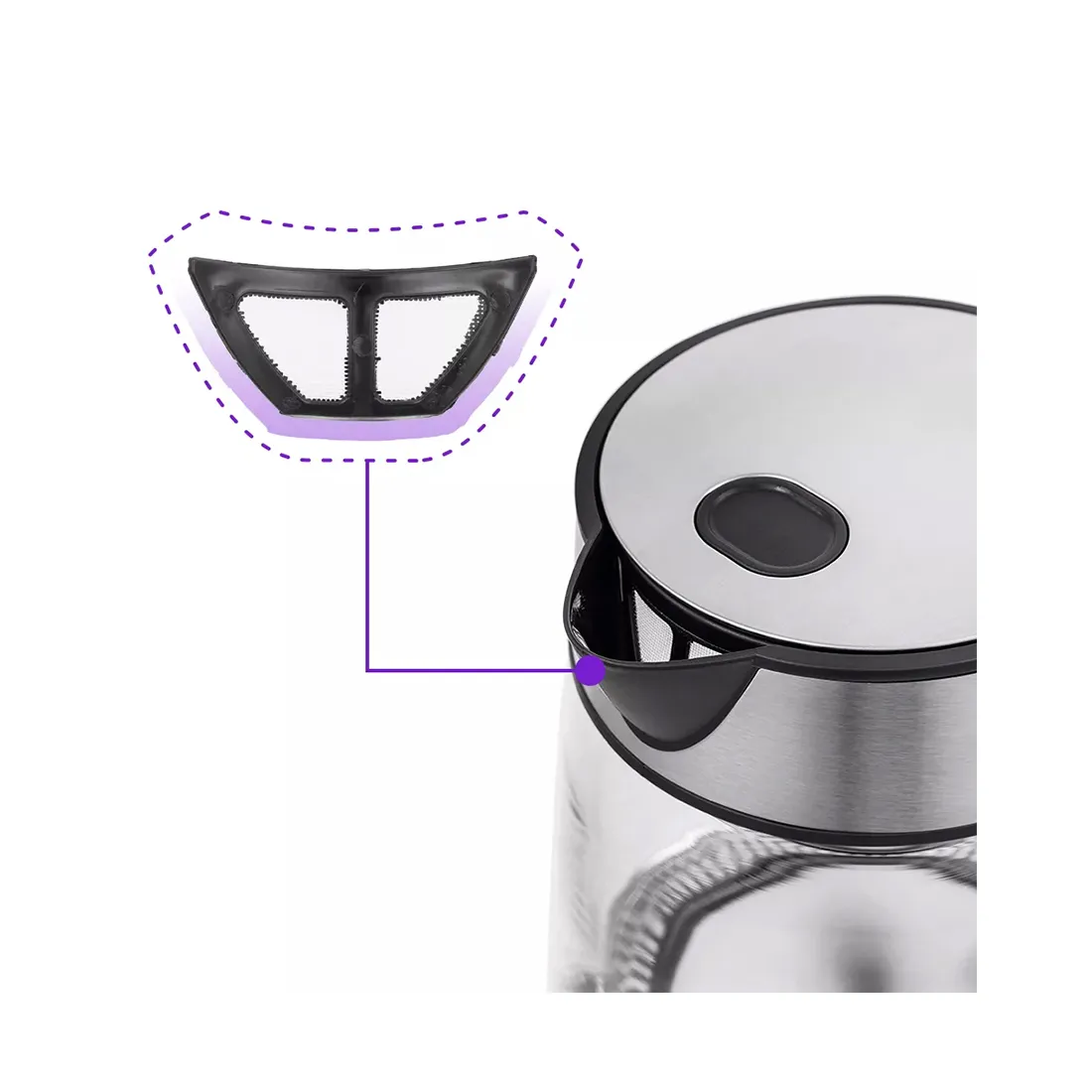 В носике чайника расположен съёмный нейлоновый фильтр, который задерживает частички накипи и предотвращает их попадание в чашку.