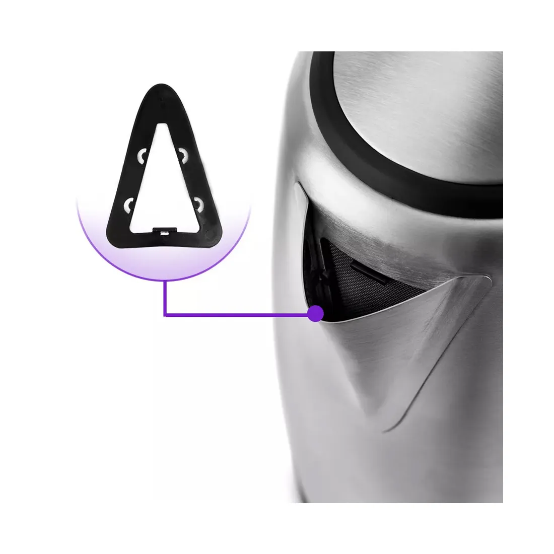 В носике чайника расположен съёмный фильтр от накипи из нейлона, который задерживает частички накипи и предотвращает их попадание в чашку.