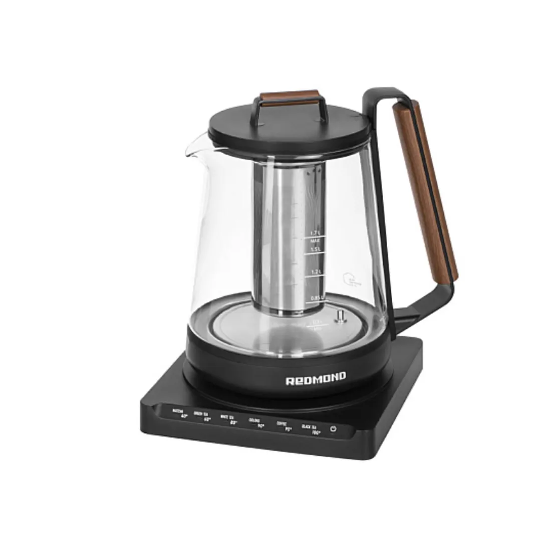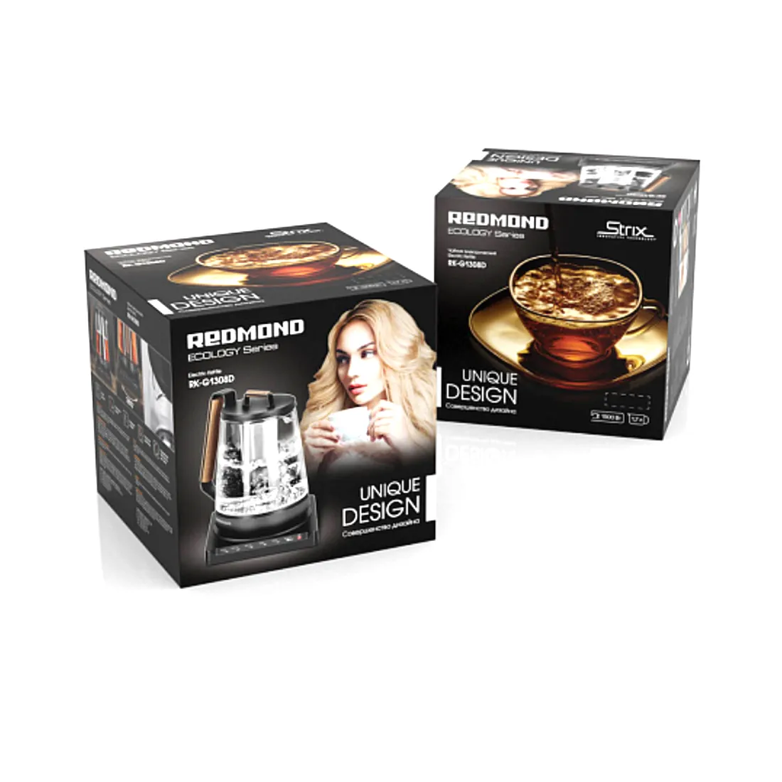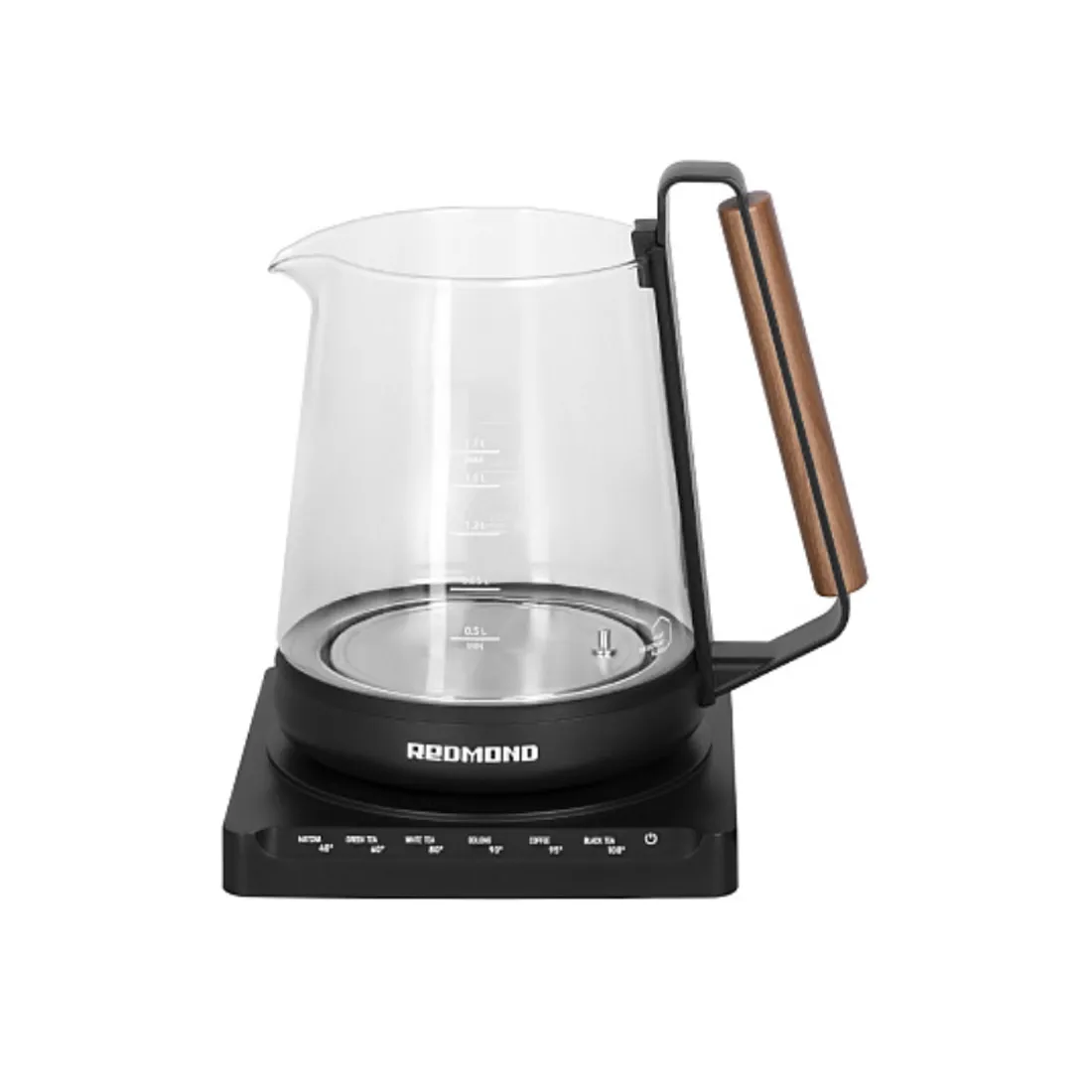 Электрический чайник REDMOND RK-G1308D – это современный прибор, позволяющий кипятить воду, подогревать ее до нужной температуры, а также заваривать напитки прямо в колбе. Изящный прибор выполнен в винтажном стиле с декоративными накладками под натуральное дерево, которые идеально сочетаются с черным матовым корпусом.