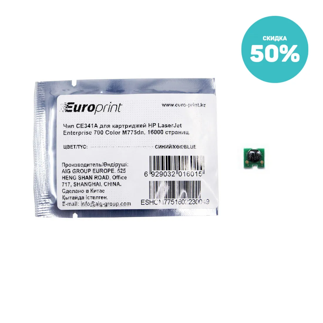 Чип, Europrint, CE341A, Для картриджей HP LaserJet Enterprise 700 Color M775dn, 16000 страниц.
