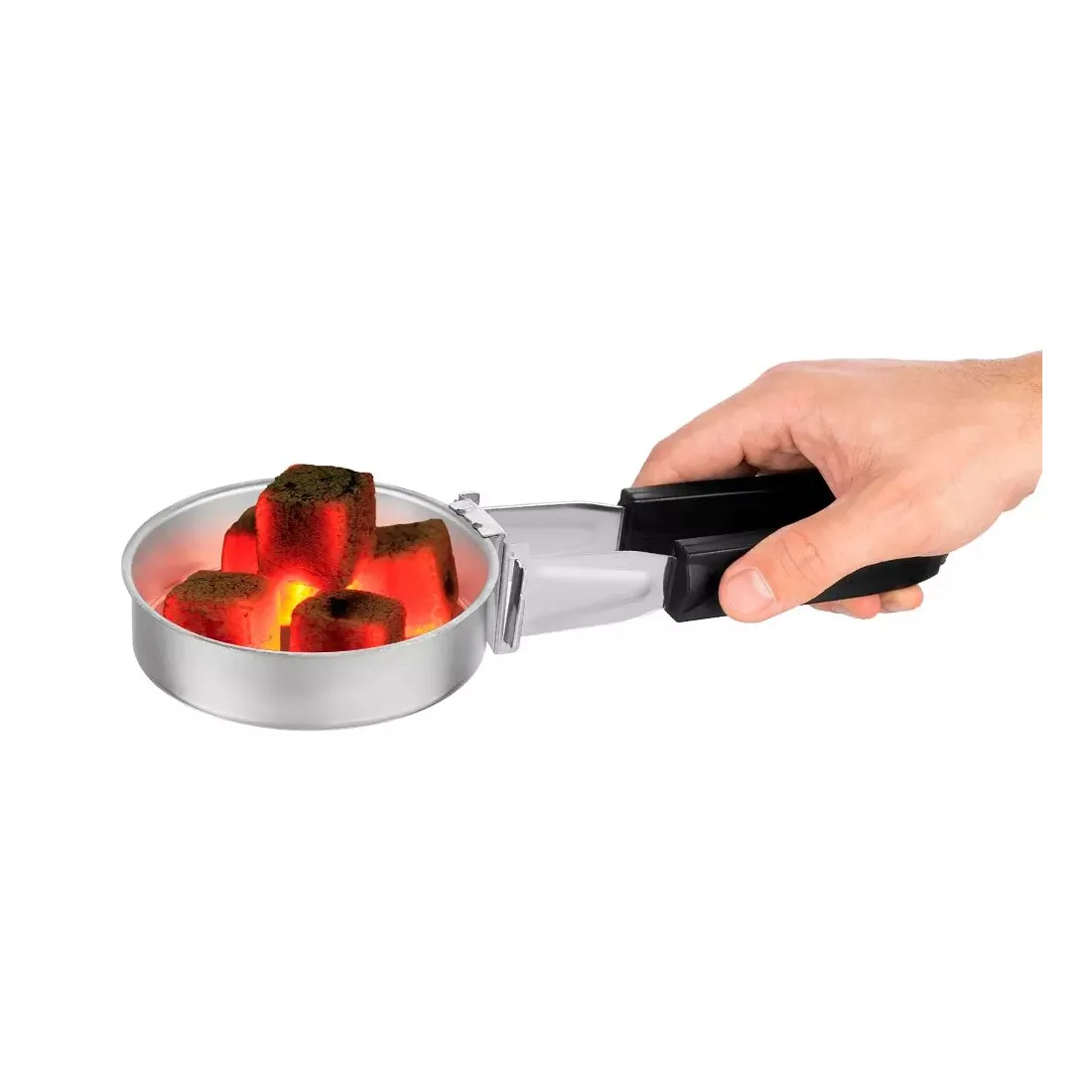 Корзина для углей съёмная, поэтому вы можете по окончанию разогрева углей снять ее и перенести ближе к кальяну.