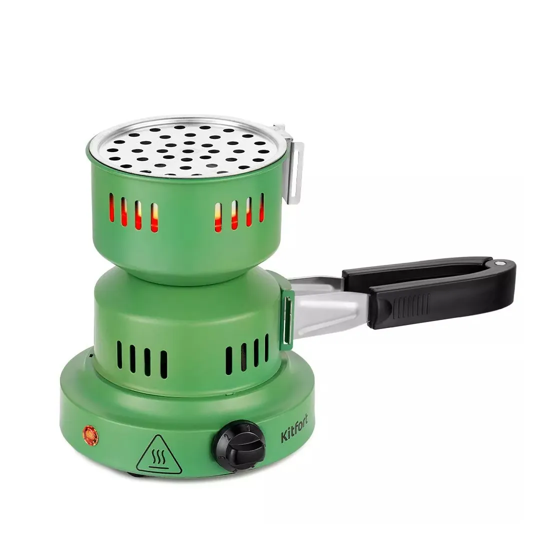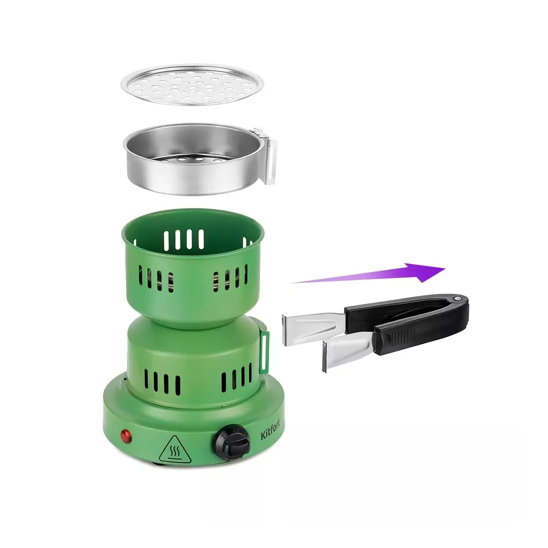 Ручка плиты длинная и не нагревается, а для удобства хранения ее можно снять. Ручку можно крепить как самой плите для розжига углей для кальяна, так и к корзине для углей.