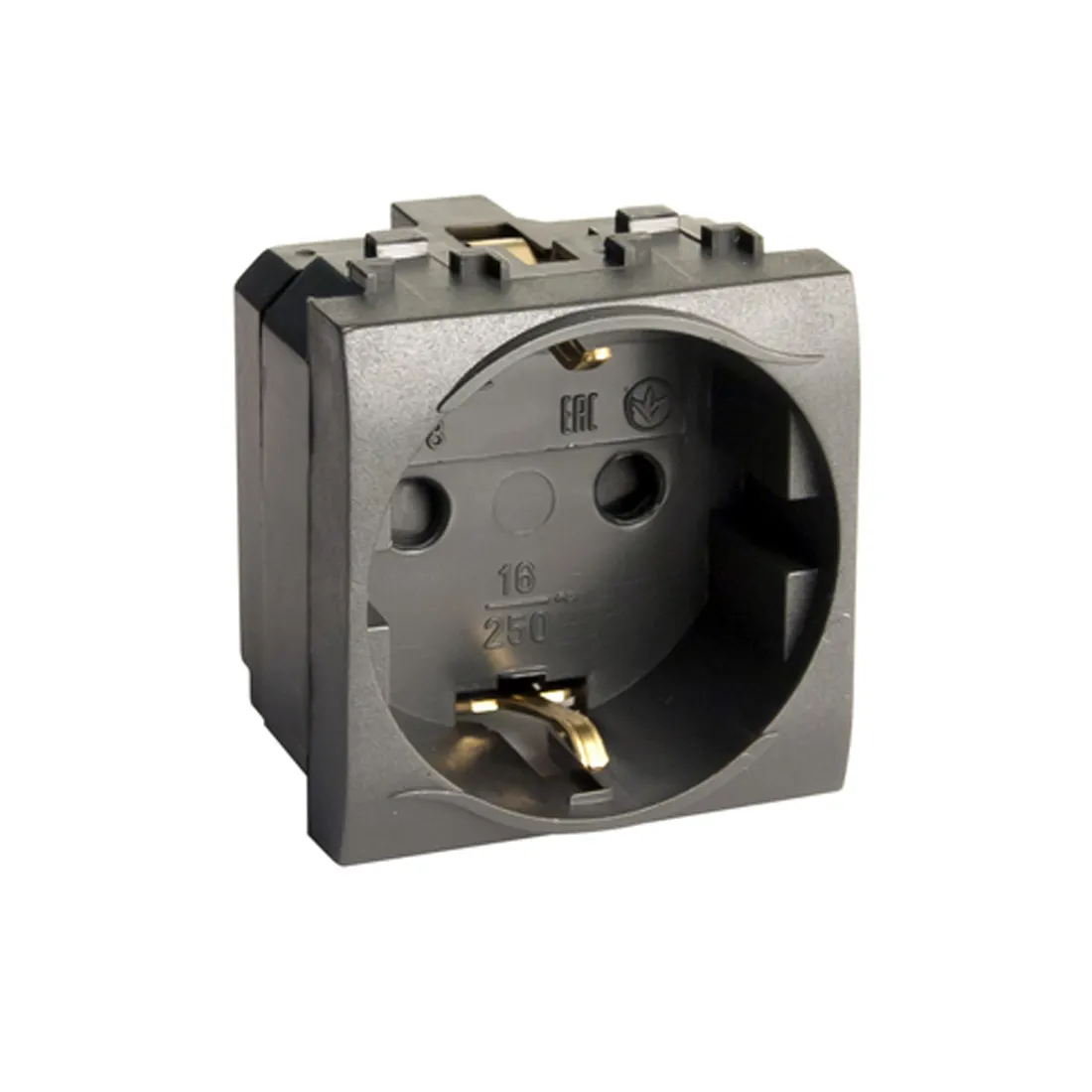 Электрическая розетка с заземлением DKC 77482N со шторками чёрная, 2мод.