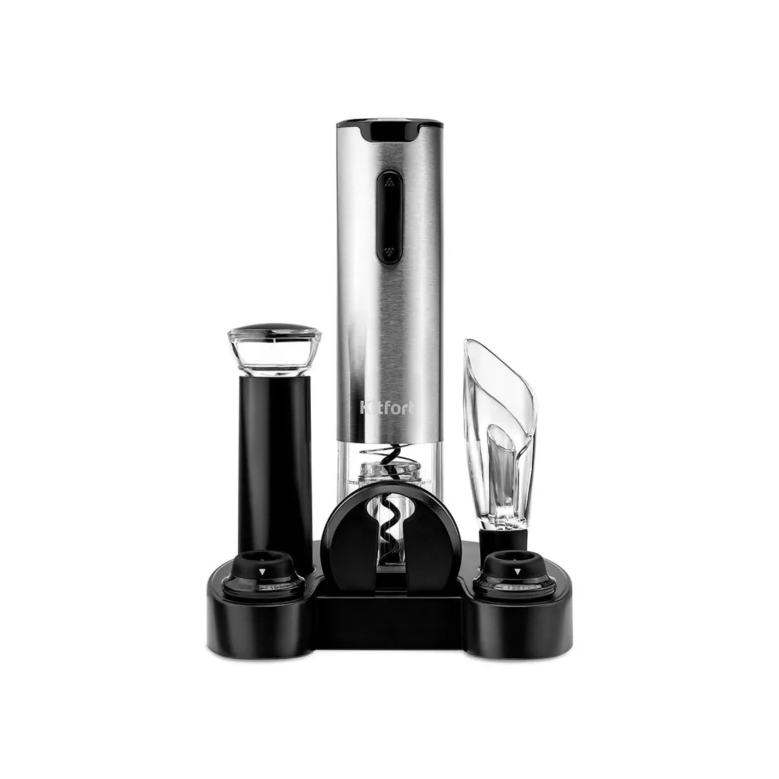 Электрический штопор “3 в 1” КТ-4041 поможет легко, быстро и безопасно открыть бутылку вина, аэрировать и красиво подать вино к столу, закупорить открытые бутылки. Благодаря строгому, минималистичному дизайну штопор станет украшением вашего интерьера.