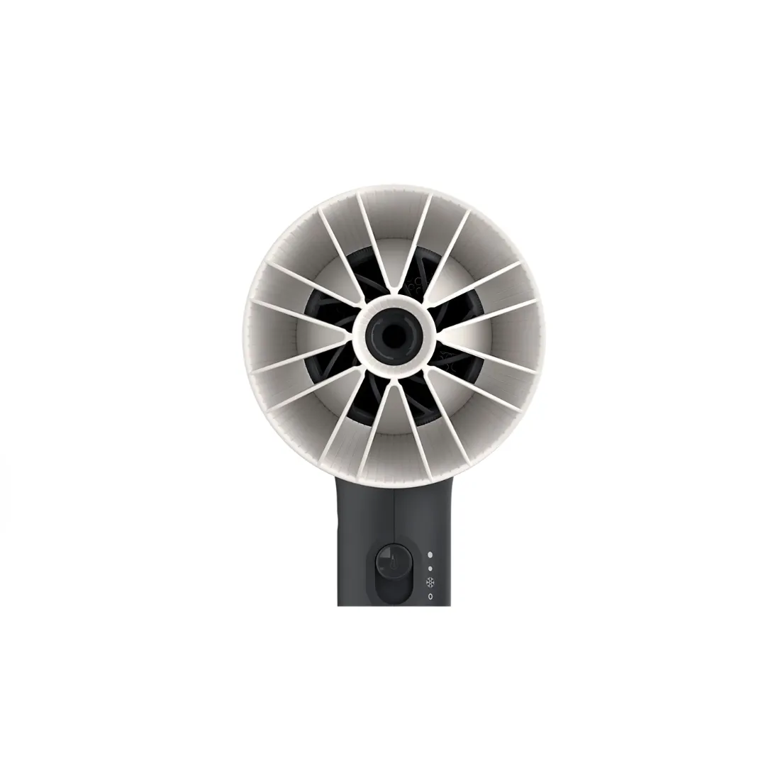 Теплый воздух дует через отверстия насадки ThermoProtect, которая индуцирует холодный воздух вокруг. В конце теплый воздух смешивается с холодным, понижая температуру сушки на 10 ⁰С, при использовании фена на мощности 1600 Вт, делая возможным деликатное сушение.