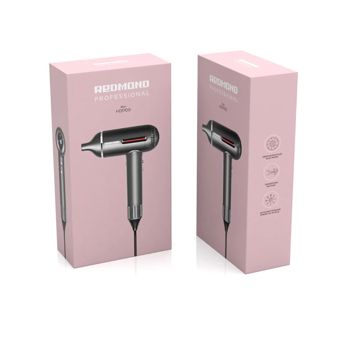 В салонах красоты используют фены с моторами такого типа — они мощные, быстрые и долговечные. Двигатель HD1700 разгоняется до 110 000 оборотов в минуту (а обычный фен — лишь до 30 000 об/мин) и у него 3 мощности обдува. Это значит, что вы очень быстро высушите даже густые и длинные волосы — ведь для быстрой сушки важна не температура, а мощность потока воздуха.