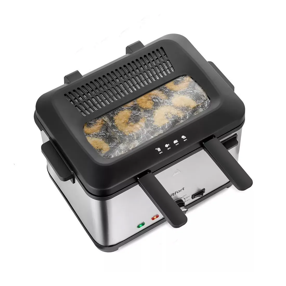 В крышке фритюрницы имеется окно, через которое вы сможете следить за готовностью блюда. Крышка прибора съёмная, что упрощает уход за фритюрницей. В крышке находится фильтр, который сдерживает распространение запаха и маслянистых испарений во время жарки.