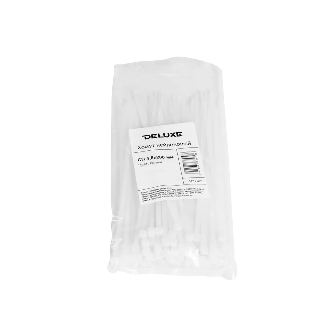 Хомут нейлоновый, Deluxe, СП 3.6*300 мм (Б), белый (100 штук в упаковке)