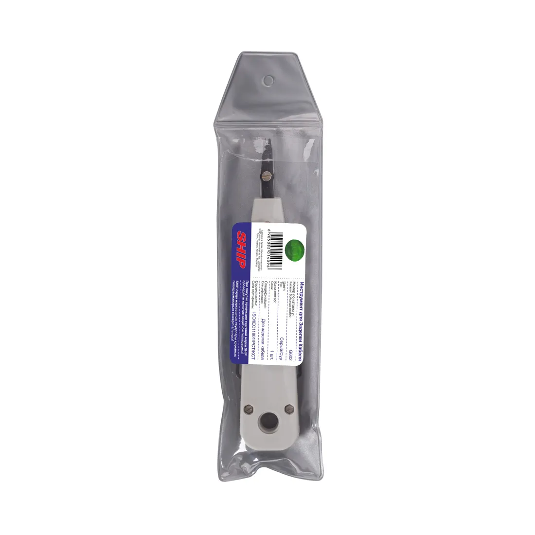 Инструмент Ship G602 предназначен для заделки витой пары. Обеспечивает мгновенную врезку провода во врезной контакт с одновременной обрезкой лишнего конца провода. При этом образуется надёжный герметичный контакт.