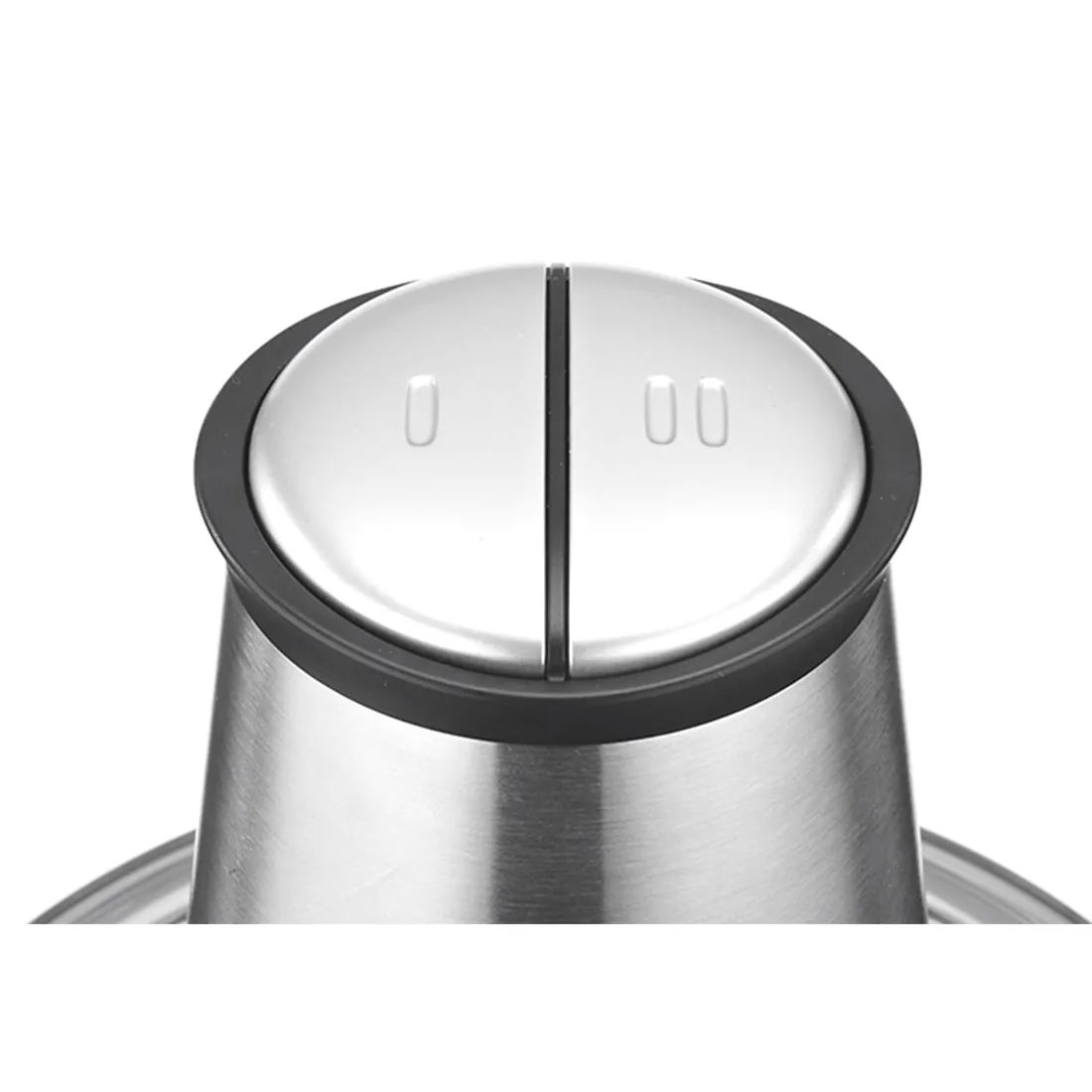 Centek CT-1395 работает очень быстро: для салата будет достаточно нескольких секунд. Степень измельчения зависит от времени воздействия. Скоростей у прибора две, для продуктов разной плотности. Подготовить его к работе и очистить после очень просто и быстро, и использовать удобно: ножи вращаются при нажатии на соответствующую кнопку на верхней части. Резиновое кольцо на дне чаши помогает чопперу оставаться на месте во время работы.