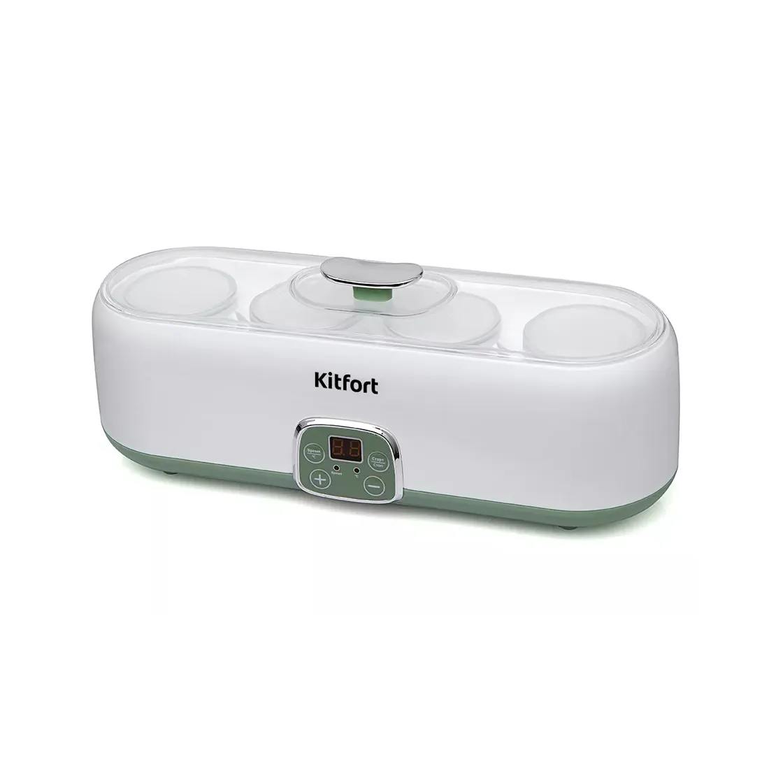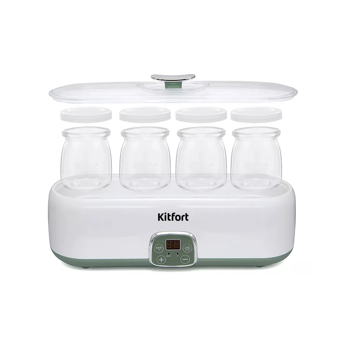 Йогуртница, Kitfort, КТ-2007, 20 Вт, 200 мл, 4 шт ёмкости, Стеклянные баночки, Дисплей, Таймер, Белый/Зелёный