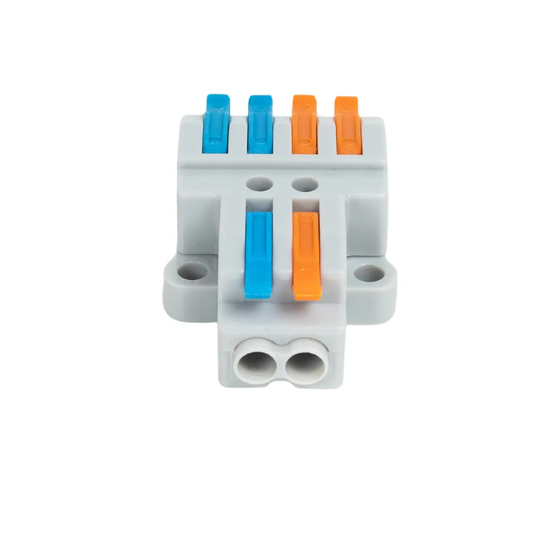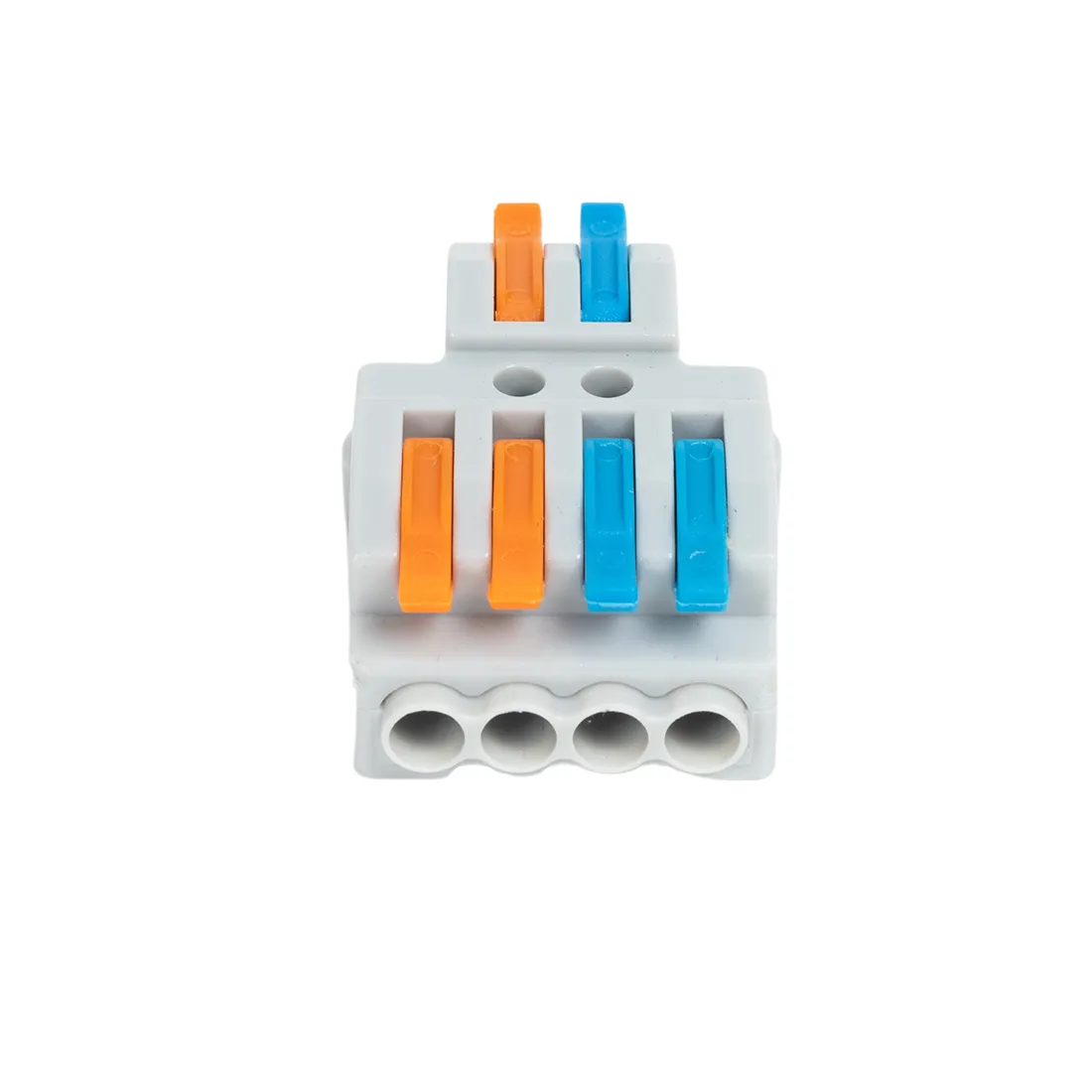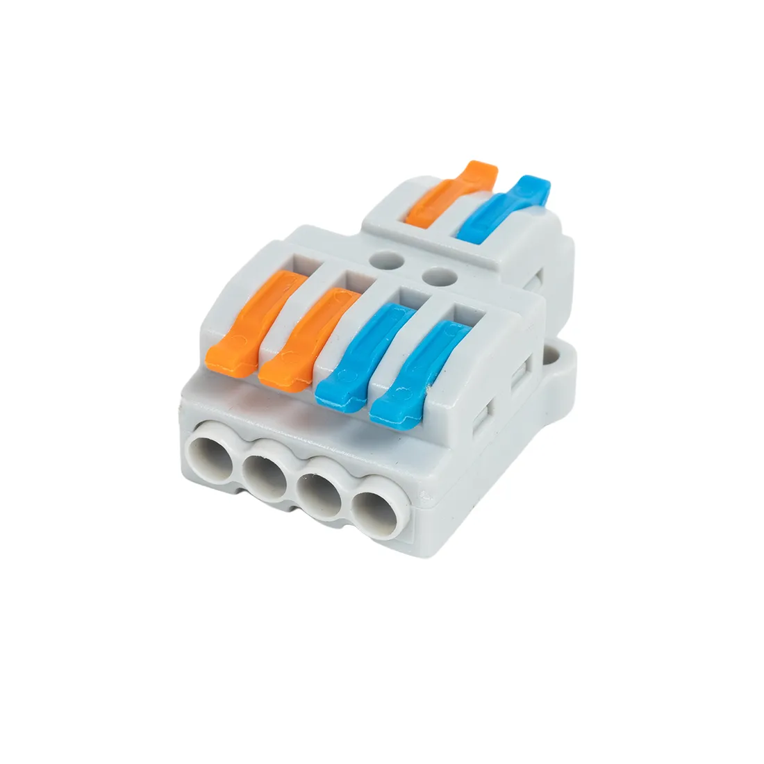 Клемма пружинная универсальная 222-424, сечение провода 0,08 — 2,5/4 мм2, 400В, 24 A, 32 A, без пасты, материал изделия пластик, латунь. Тип провода одножильный/многожильный, материал провода медь, температура окружающей среды -20…+40°C