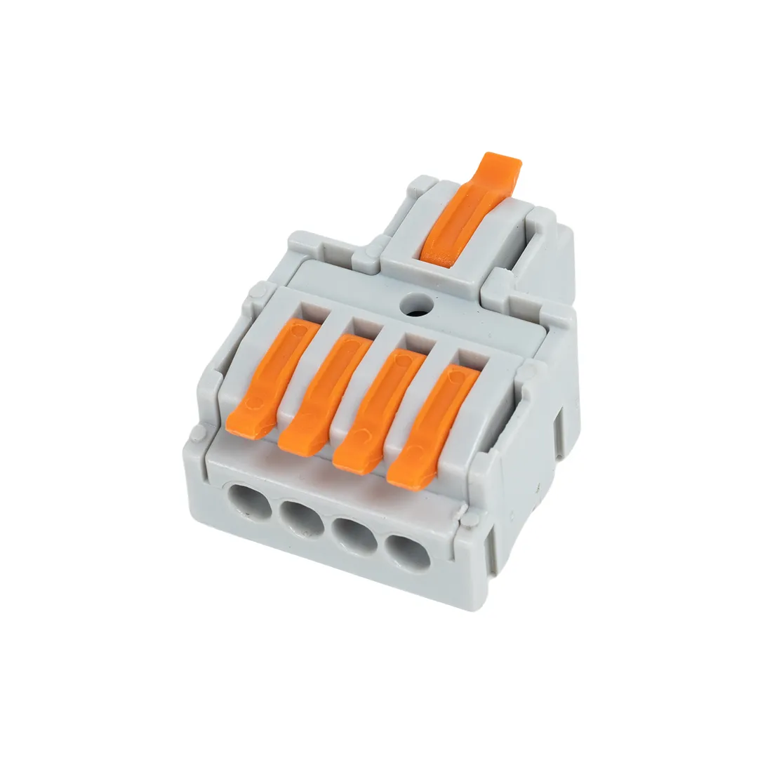 Клемма пружинная универсальная для сечения проводников, без пасты, материал изделия — пластик, латунь. Тип провода — одножильный/многожильный, материал провода — медь, температура окружающей среды. Данная клемма проходная, предназначена для присоединения, необходима для создания узкого и удлиненного соединения там, где это необходимо.