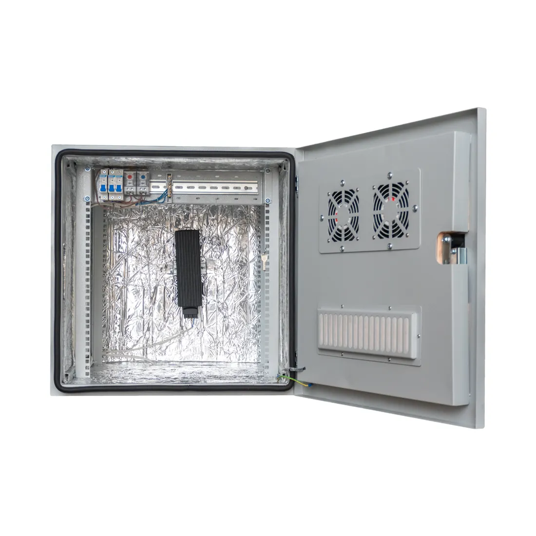 Комплектация — Вентилятор 120мм 220В 2 шт., Обогреватель 100Вт 1 шт., Автомат 16А 3 шт., Термостат NC 1 шт., Термостат NO 1 шт.