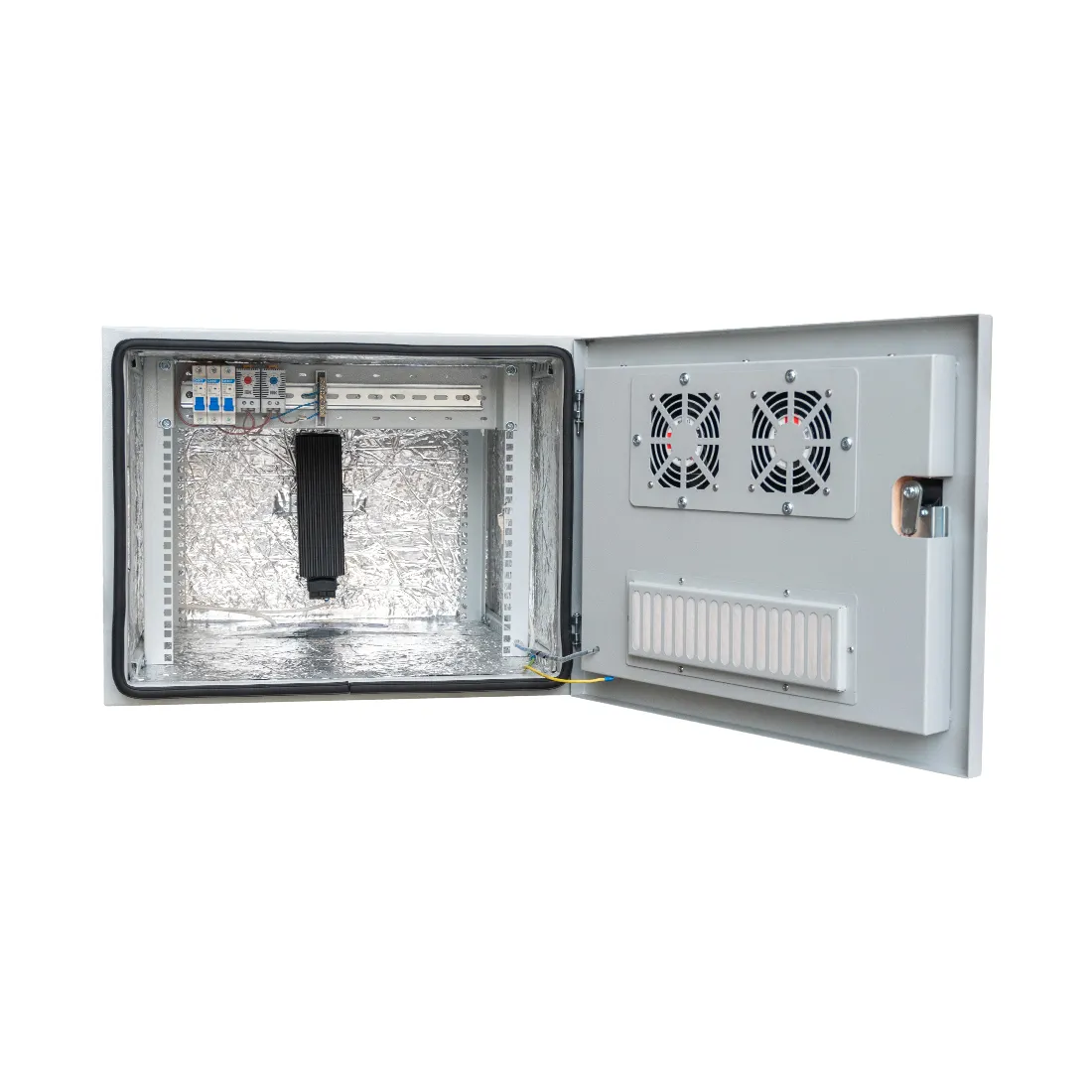 Комплектация — Вентилятор 120мм 220В 2 шт., Обогреватель 100Вт 1 шт., Автомат 16А 3 шт., Термостат NC 1 шт., Термостат NO 1 шт.