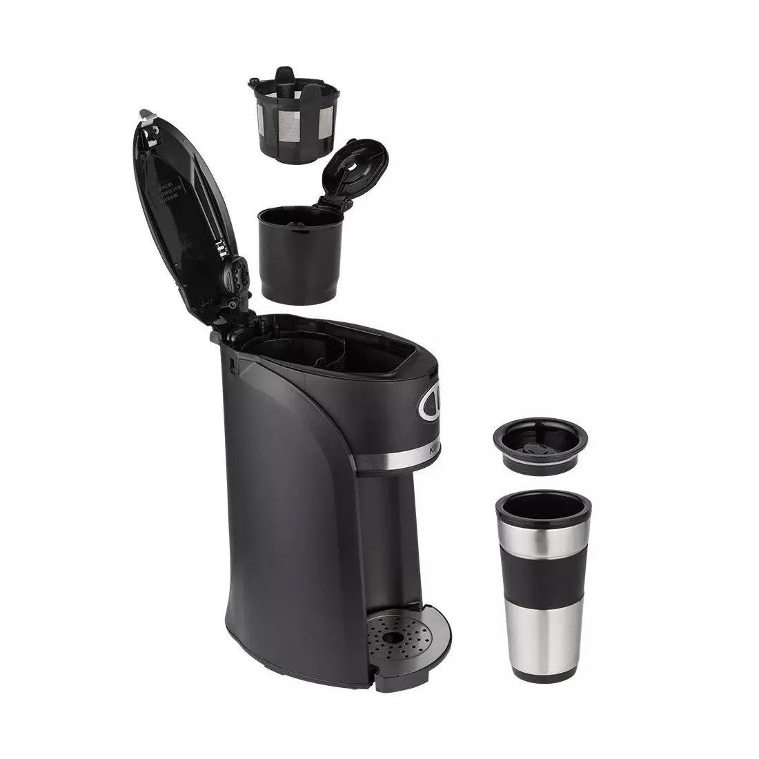 В кофеварке вода доводится до температуры 80-90 °С, после чего поступает в фильтр с кофе. Сетка фильтра кофемашины изготовлена из нержавеющей стали, используйте его неограниченное количество раз. В резервуаре для воды есть отметки 300, 360 и 420 мл.