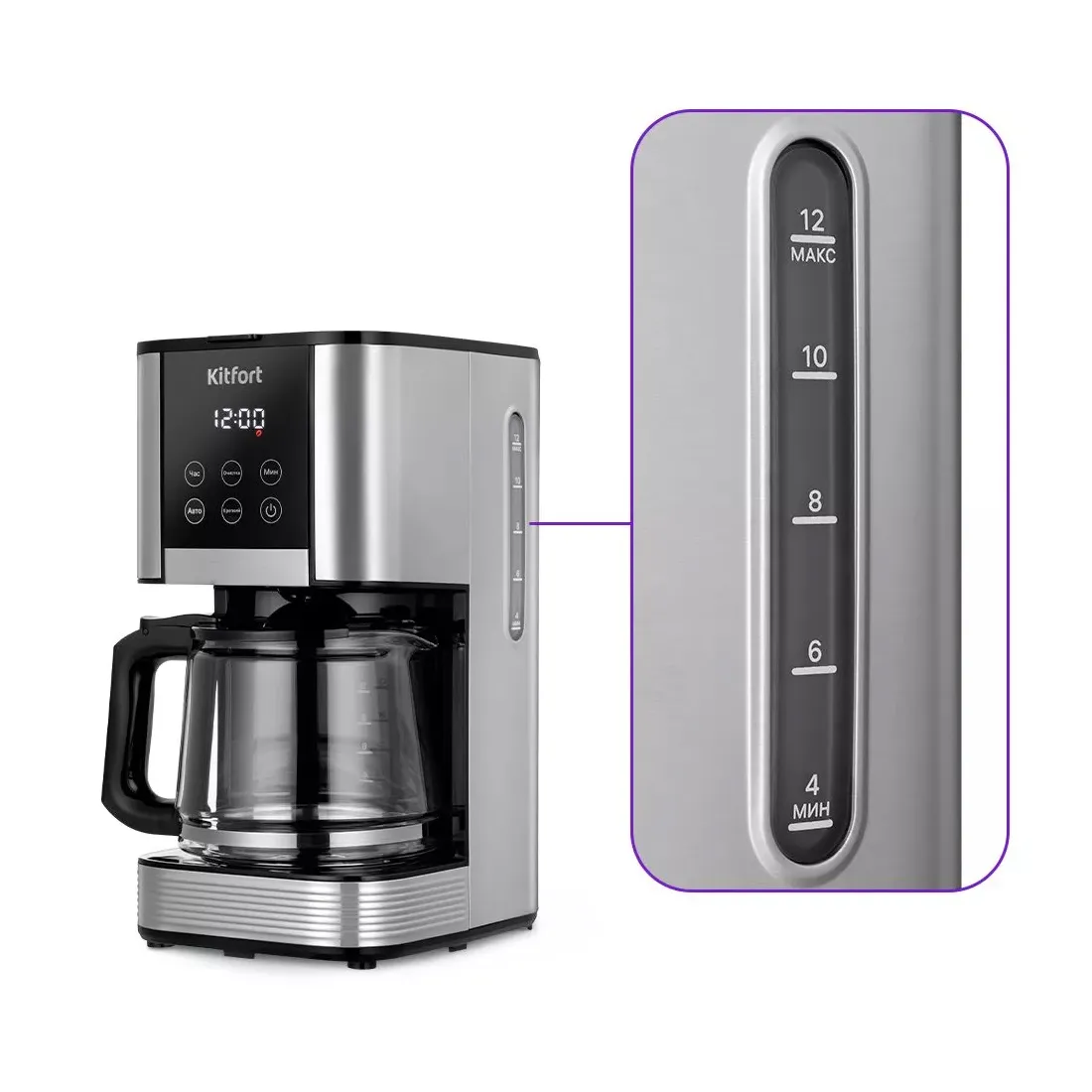 Капельная кофеварка Кіtfort КТ-7222 поможет приготовить ароматный кофе из молотого кофе. Она компактная и простая в использовании. Кофеварка идеально подойдёт для приготовления кофе в домашних условиях или в офисе.