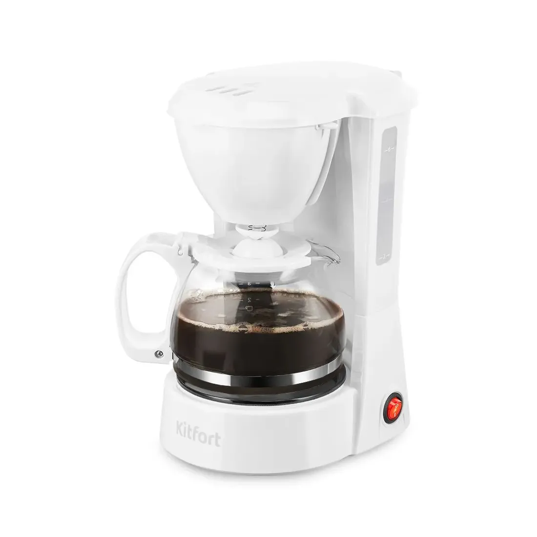 Капельная кофеварка КТ-7327 готовит ароматный чёрный кофе из молотого кофе. Управление кофеваркой очень простое и осуществляется при помощи одного переключателя. Прибор компактный и не займёт много места на вашей кухне.