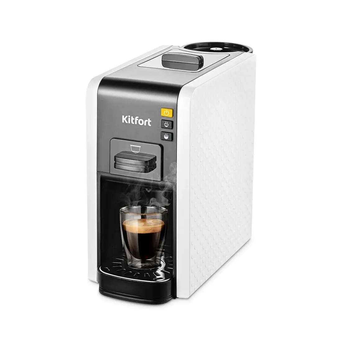 Кофеварка, Kitfort, КТ-7467, 3 в 1, Капсульная/рожковая, Давление 19 бар, Кофе в капсулах/ молотый, Объем резервуара для воды 0.8л, Максимальная высота чашки 11см, Мощность 1100 Вт, Длина шнура 0.9м, Белый/Черный