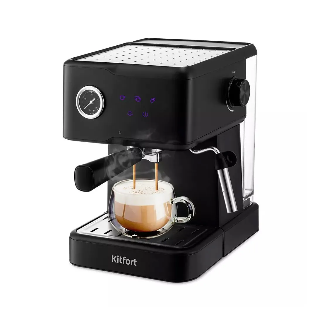 Рожковая кофеварка КТ-7124 поможет приготовить кофе эспрессо, капучино или латте, а также множество других видов кофе на ваш вкус. С помощью рожковой кофеварки вы можете подогреть паром остывший чай или молоко.