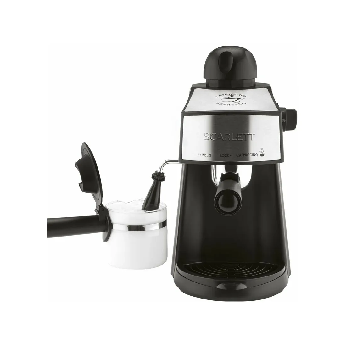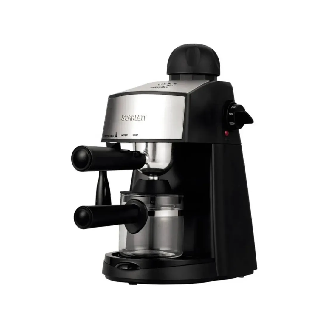 Кофеварка бойлерного типа SC-CM33004 мощностью 800 Ватт оснащена кофейником из термостойкого стекла.Классическое сочетание цветов с металической декорацией впишется в любой интерьер.