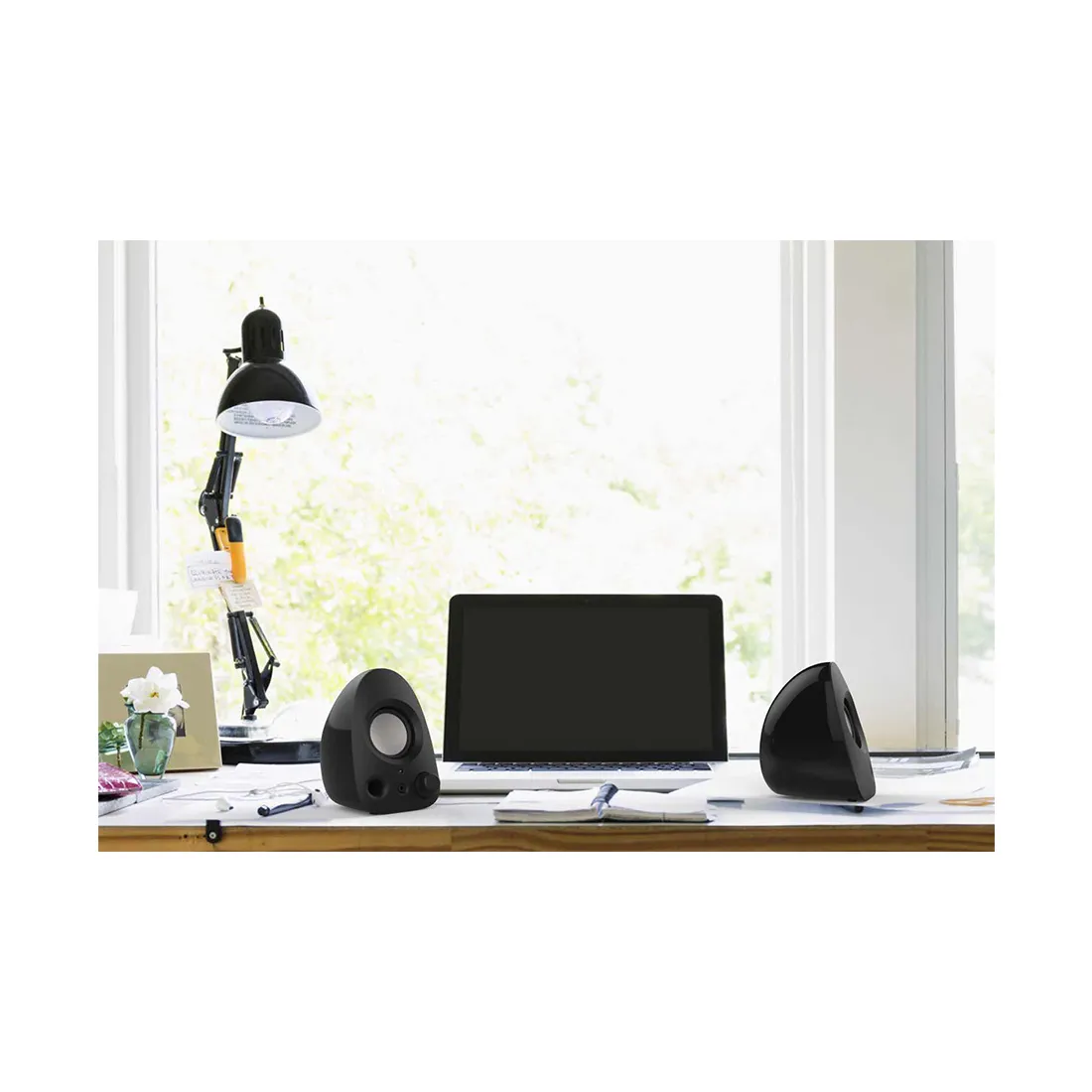 Миниатюрные колонки Microlab B19 в неброском чёрном цвете пригодятся для прослушивания аудиофайлов. Стильные компактные колонки, выполненные из пластика, смотрятся очень уместно рядом с современным компьютером — чёрный цвет с серебристыми оттенками подчеркнёт их интересную форму. Достаточно мощные для своего размера колонки способны воспроизводить звук чисто и без помех. Microlab B19 идеально подойдут для воспроизведения звука от компьютера или музыкального центра, при этом они займут совсем мало места на рабочем столе.