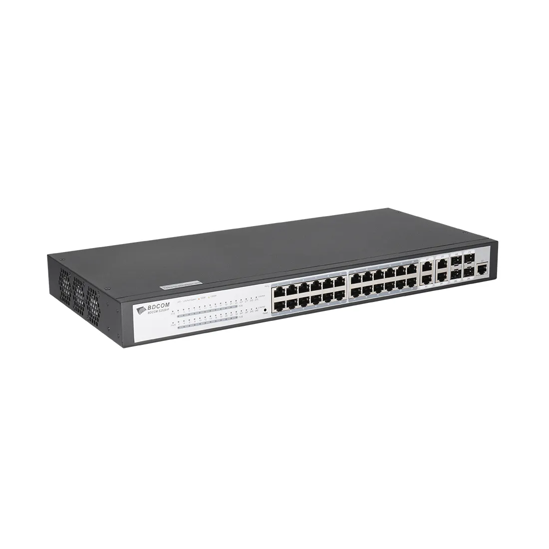 Коммутатор, BDCOM, S2528-P, Управляемый L2+, 24 порта PoE 10/100/1000M RJ45, 4 комбо-порта 1000M SFP, Бюджет PoE 370W, Стоечный 1U,
