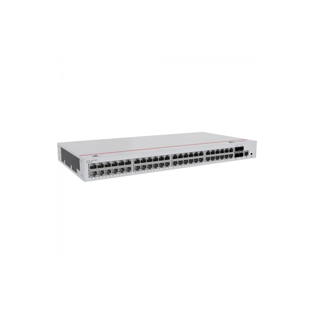 Модель оснащена 48 гигабитными медными портами и 4 высокоскоростными оптическими 10GE SFP+ портами, обеспечивая надёжное подключение и гибкое масштабирование сети.