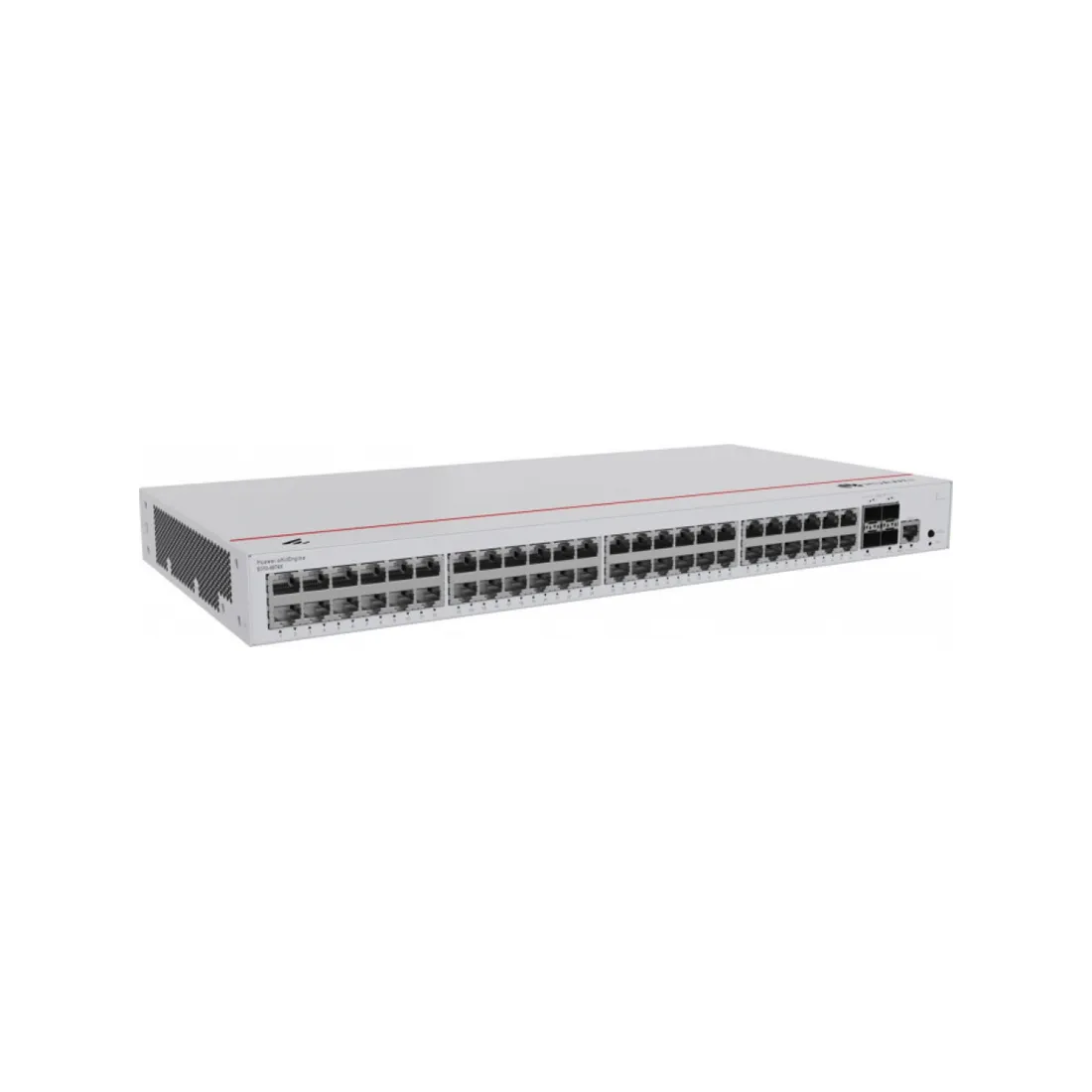 Модель оснащена 48 портами 10/100/1000Base-T и 4 высокоскоростными 10GE SFP+ портами uplink, обеспечивая гибкое масштабирование сети и стабильное подключение большого числа устройств.