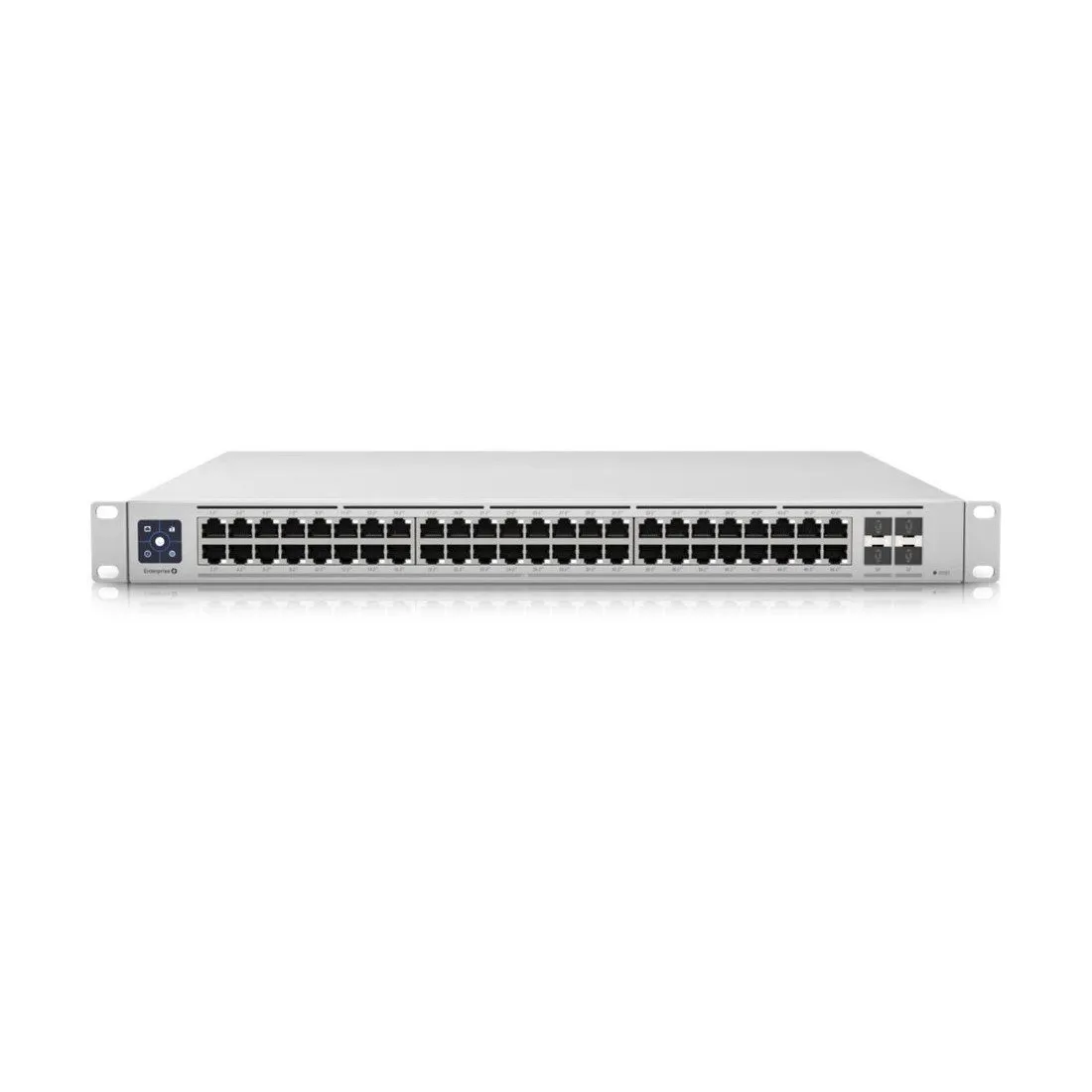 Коммутатор, Ubiquiti, USW-Enterprise-48-PoE, Unifi Switch Enterprise 48 PoE, Управляемый L3, 48 портов 10/100/1000/2500 Mbps RJ45 PoE+, 802.3af/at, бюджет 720W, 4 порта SFP+, 1.3″ сенсорный LCM, Стоечный