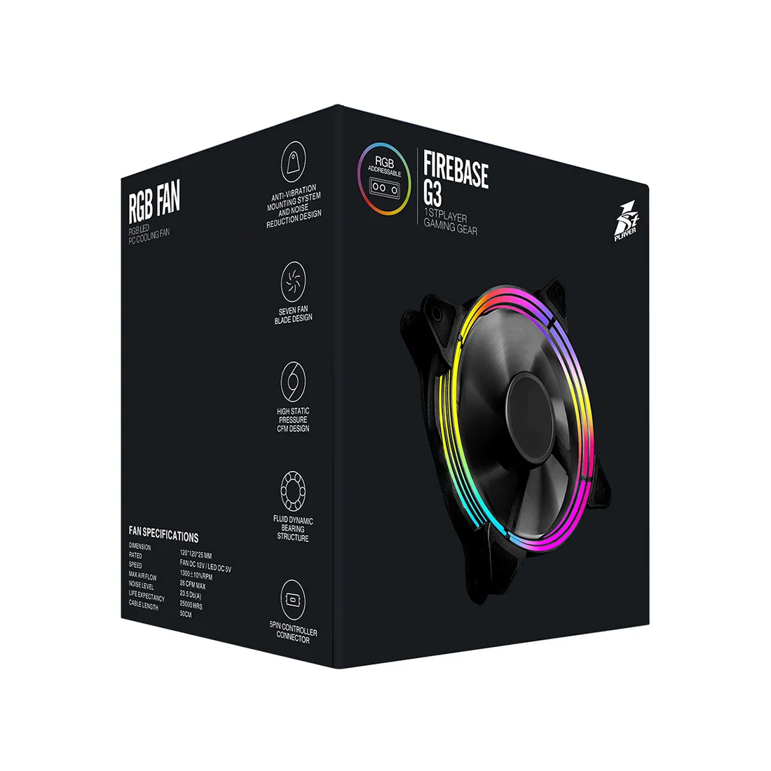 Комплект кулеров для компьютерного корпуса 1STPLAYER FIREBASE G-3 COMBO 3в1 представляет собой комплект из трех вентиляторов, разработанных для обеспечения эффективного воздушного охлаждения вашей системы.