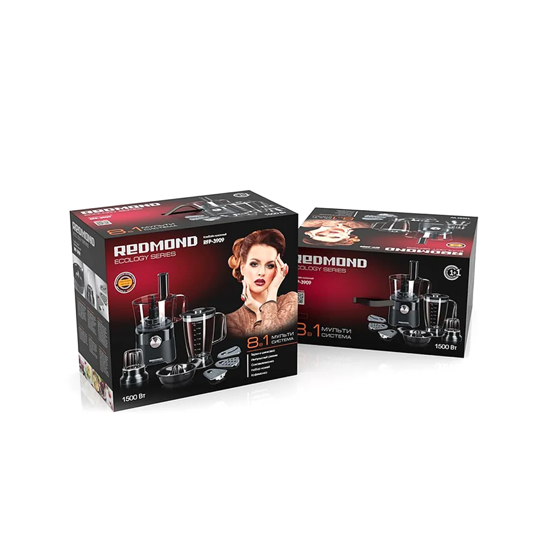 RFP-3909 – мультисистема «8 в 1», мощный прибор для измельчения продуктов, а также приготовления домашнего теста, соусов, крем-супов и других блюд. Кухонный комбайн REDMOND выполняет функции сразу нескольких специализированных устройств – блендера, миксера, терки, овощерезки, соковыжималки и кофемолки.