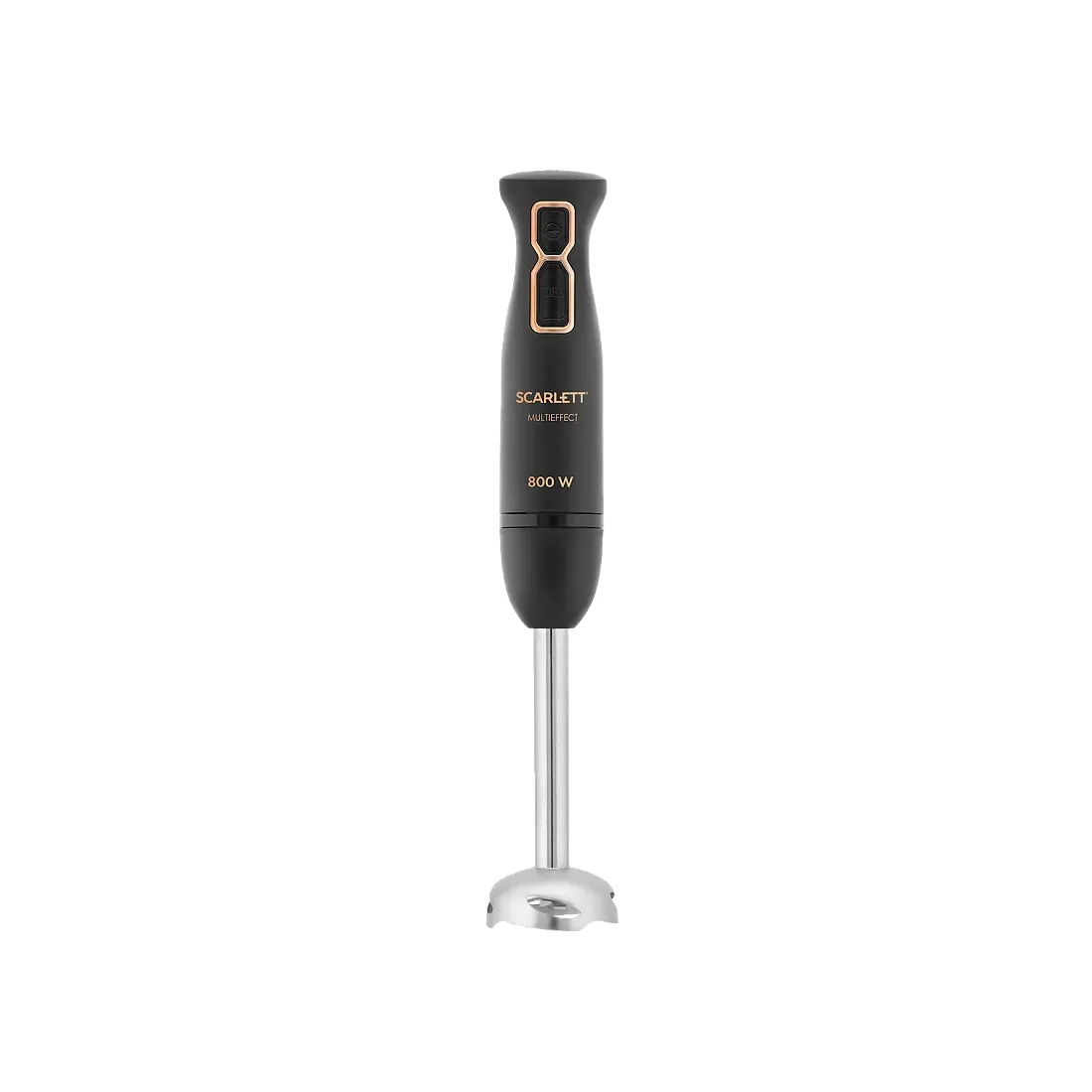 Погружной блендер Scarlett SC-HB42K09 оснащён мощным мотором 800Вт, к нему прилагается множество насадок, с помощью которых можно измельчать продукты, готовить тесто, взбивать крем, выполнять другие задачи.