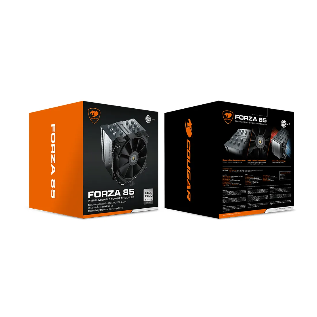 В качестве однобашенного воздушного кулера для процессоров среднего и высокого уровня Forza 85 с уникальной передней крышкой в сочетании с высокопроизводительным вентилятором COUGAR MHP120 обеспечивает пользователям оптимальный баланс между бесшумной работой и превосходным охлаждением. Forza 85 создана для большинства пользователей, использующих производительность.