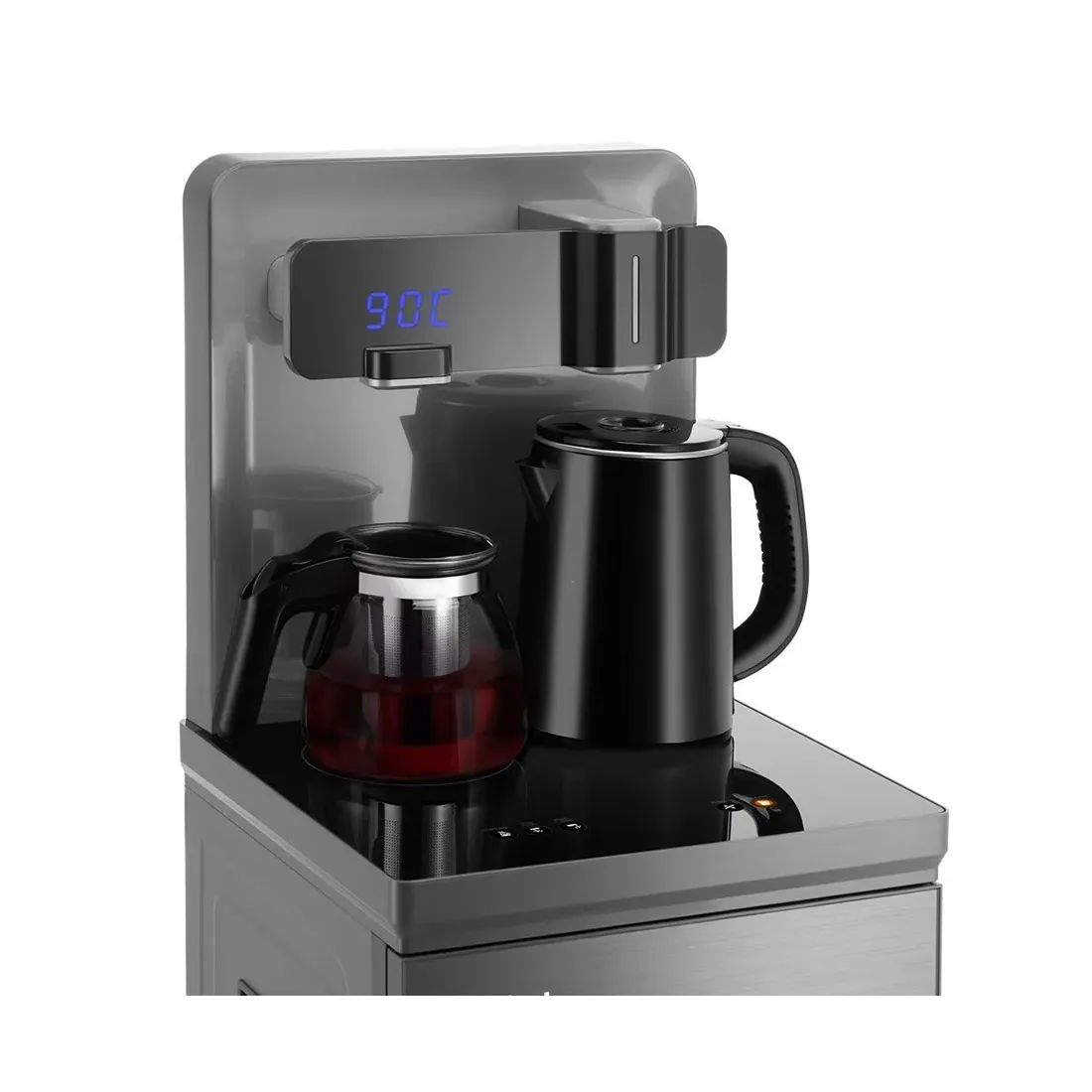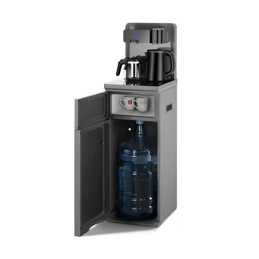 Кулер оснащён полкой для хранения чайных принадлежностей и нижним отсеком для хранения ёмкости с водой. Встроенная электрическая помпа для воды предназначена для перелива воды из бутыли в чайник для последующего нагрева.