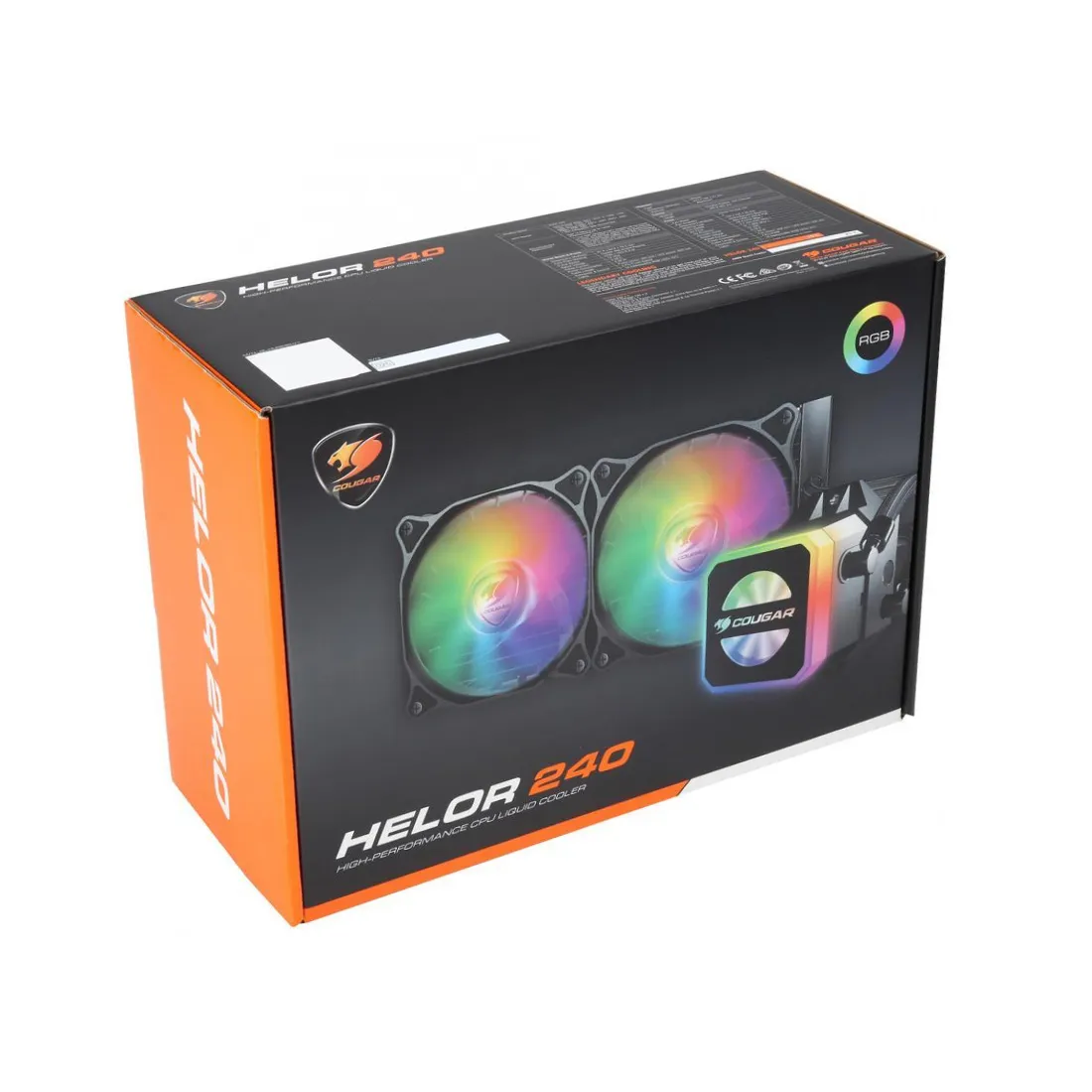 Кулер с водяным охлаждением, Cougar, Helor 240, Intel 20хх/1366/1200/115х и AMD AM4/AM3+, 2*120мм ARGB, 600-1800 RPM±10%, 78.4CFM, 37.1 dB(A), Чёрный