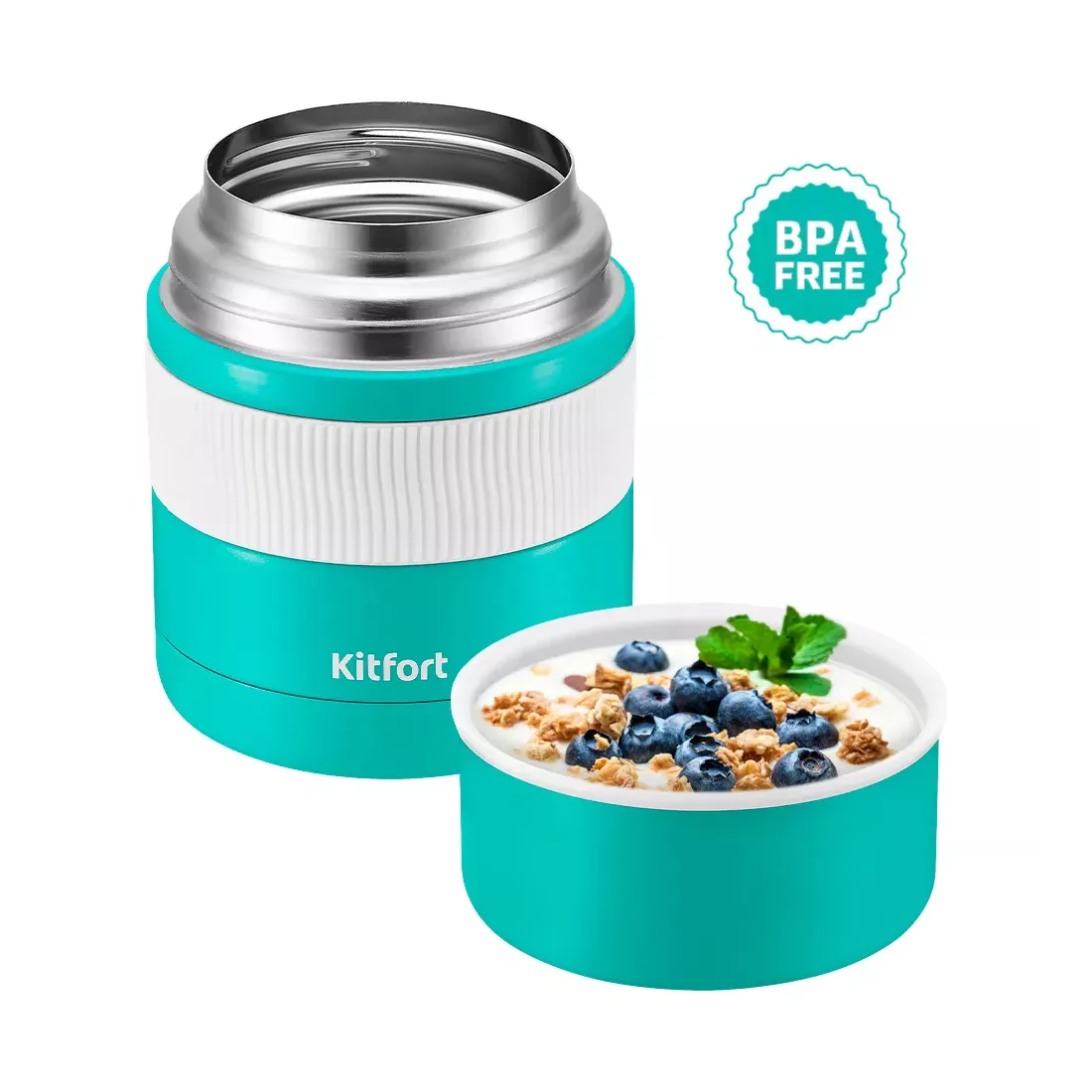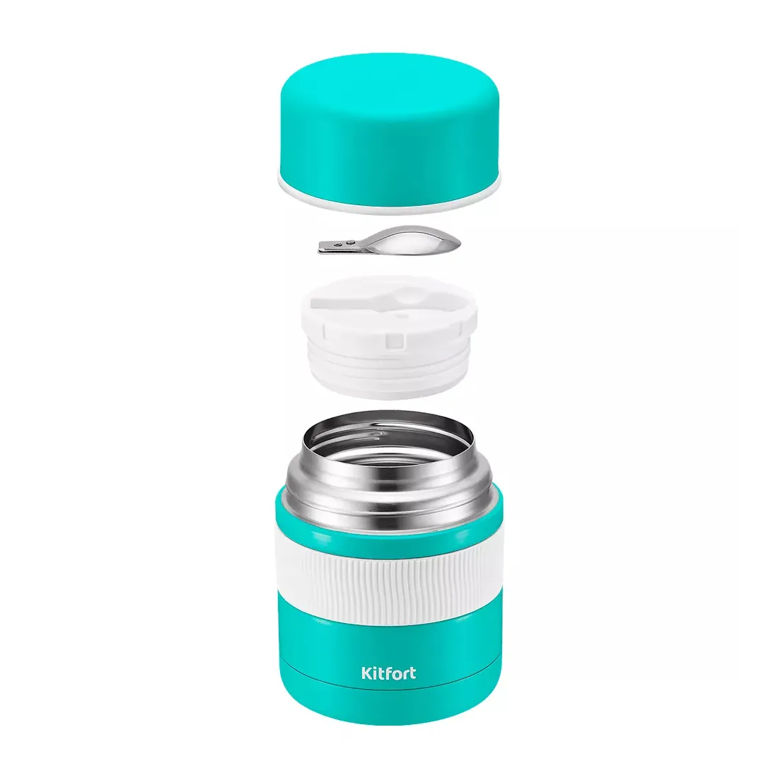 Ланч-бокс, Kitfort, КТ-1218, Материал корпуса нержавеющая сталь, Складная ложка, Ёмкость ланч-бокса 500 мл, Цвет зеленый