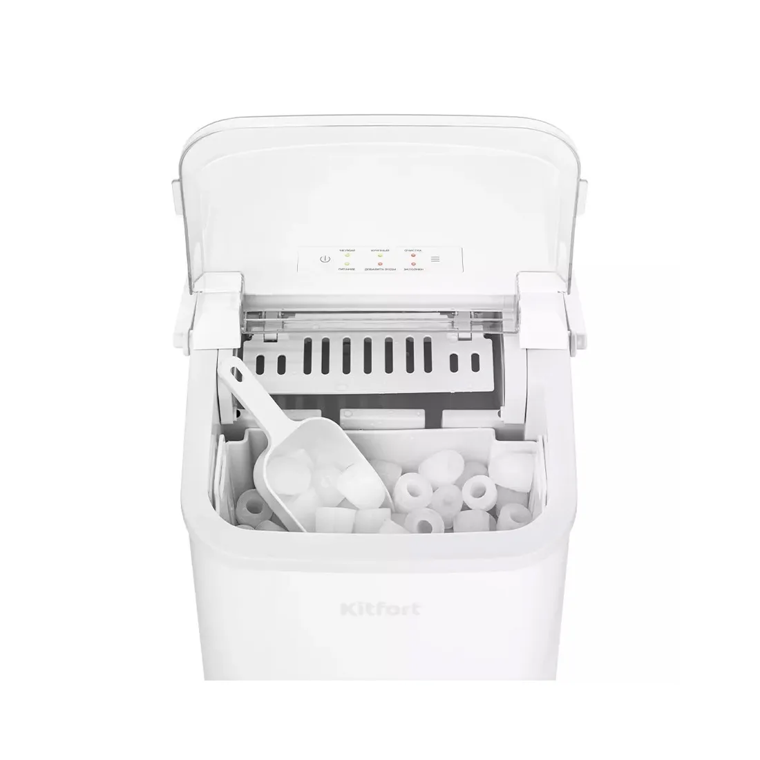 Льдогенератор, Kitfort, КТ-1831-1, Мощность -100 Вт, Ёмкость резервуара — 1,5 л, Климатический класс — SN/N/ST, Хладагент — изобутан R600a, Количество хладагента — 26 г, Уровень шума — 45 дБ , Цвет белый