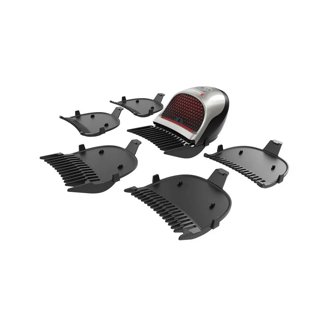 В комплект входит 9 насадок-гребней различной длины, благодаря чему владелец устройства может быстро создать тот образ, который ему необходим. Машинка стрижёт быстро и качественно, она не требует сложного ухода. Регулярная чистка лезвий позволяет значительно продлить срок её эксплуатации.