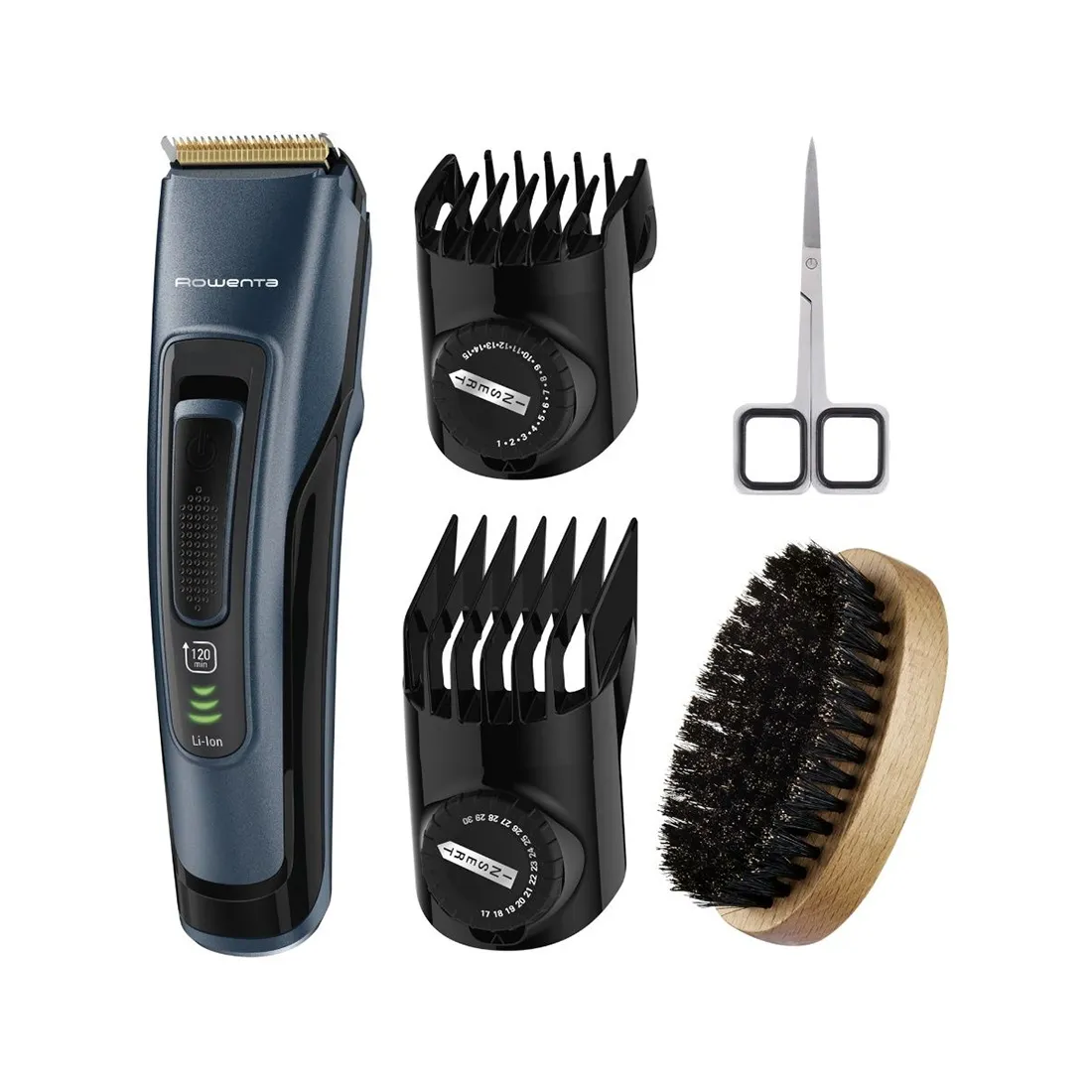 Эксклюзивный триммер Rowenta Signature разработан специально для стрижки длинной густой бороды благодаря идеальному лезвию 39 мм. Высококачественные лезвия из нержавеющей стали c титановым покрытием сохраняют свою остроту надолго. С двумя регулируемыми насадками вы сможете брить бороду любой длины на свой вкус, в общей сложности доступно 44 уровня длины (0,5-30 мм). Дополняет все это щетка из 100% щетины кабана для ухода и стимулирования роста бороды, а также ножницы для усов из нержавеющей стали премиум-класса.