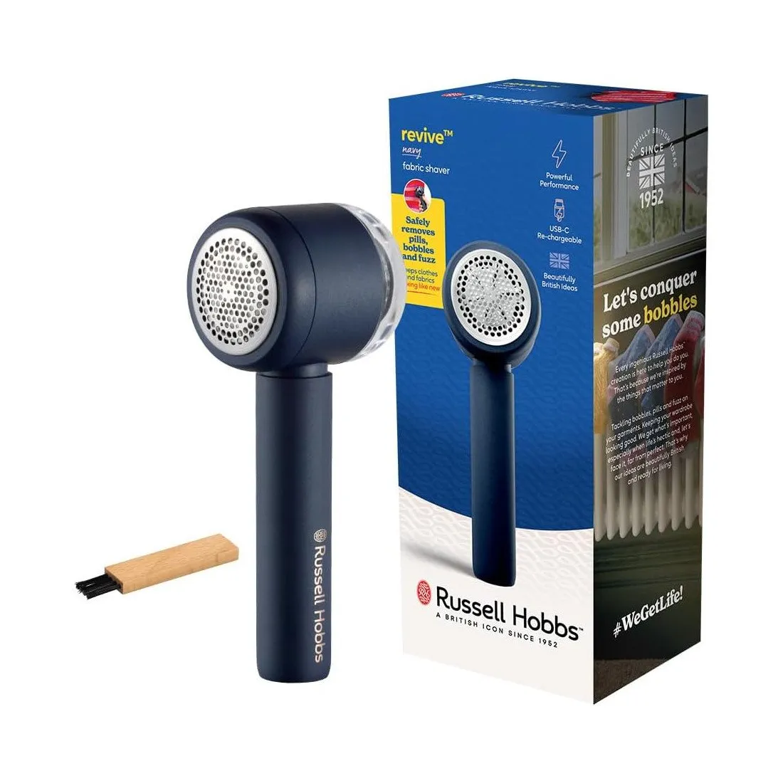 Машинка для удаления катышков с одежды , Russell Hobbs, 27660-56, Мощность 5 Вт, Время работы 90 мин,Время заряда 3 ч, Функция блокировки для транспортировки,Синий